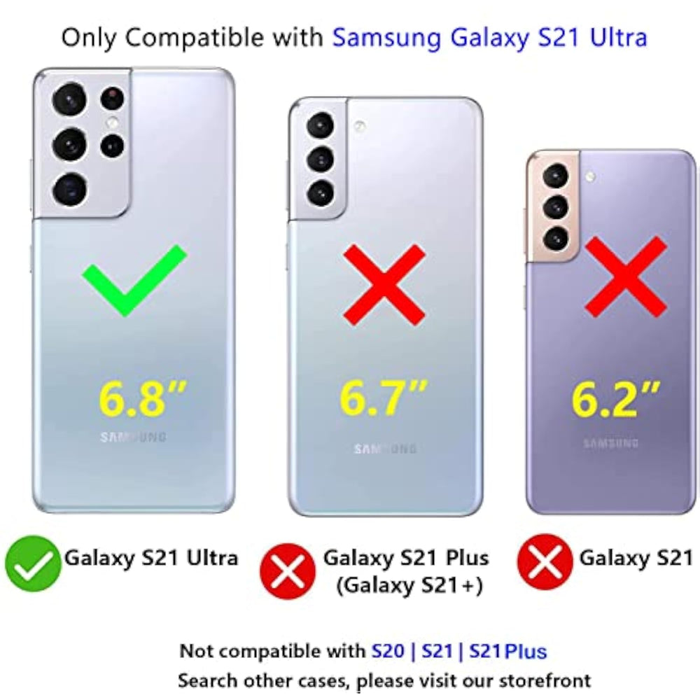| [Compatible With] Compatible With Samsung Galaxy S21 Ultra Case. Uses A High-Quality Flexible Tpu Bumper And Built-In Shockproof Airbags In 4 Corners For Strong Durability Against Shocks And Scratches, Provides Strong Protection For Your Phone. | | [Camera Screen Protection] Raised Bezels Prevent Screen And Camera Against Drops Scratches. Raised Lip Relieves Impact And Protects Your Phone Screen Against Drops Cracks Surface Scratches. | | [Double Design Material] Military Drop Tested. 2-Layer Structure Provides Rugged Protection.The Samsung Galaxy S21 Ultra Case Is Made With Flexible Rubber Inner Cover And Hard Pc Back Cover, Provides Good Shock Proofing And Anti-Drop Protection.Made Of The Premium Frosted Material. Solved The Problem Of Leaving Fingerprint Marks By Sweating Hands.And Prevents The Phone Slipping From Your Hands. | | [Precise Design Fits Perfectly] Precision Cutouts For Easy Access To All Ports, Buttons, Sensors And Cameras. The Unique Ergonomic Design Makes Independent Buttons Feel Sensitive And Easy To Press, With Good Touch. 100% Support Wireless Charging. | | [Warm Reminder] You Will Get A Case For Samsung Galaxy S21 Ultra, 6 Months . If You Have Any Issues, Please Feel Free To