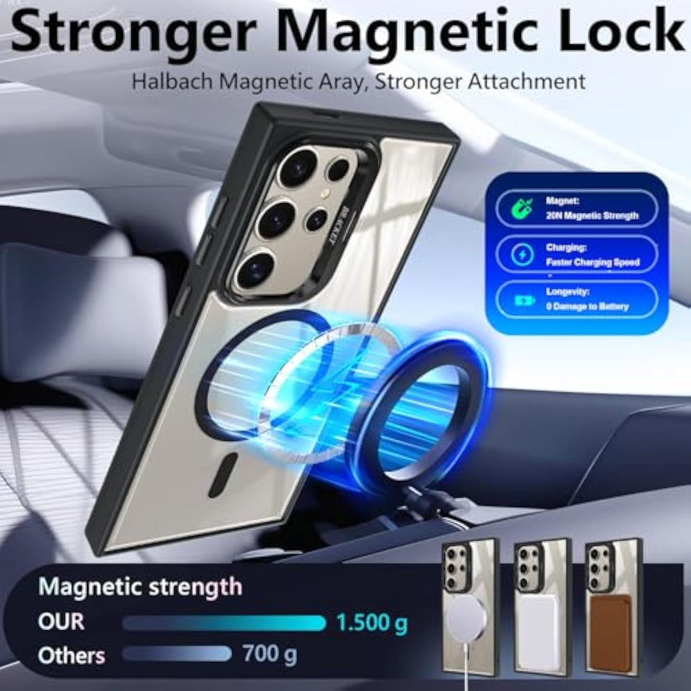 | ?Compatible?Compatible With Samsung Galaxy S24 Ultra 6.8 Inch. Please Check Your Phone Model Before Purchase. Email Us First If There Is Any Problems. | | ?Strong Magnetic Attraction For Magsafe Compatibility?: Features 38 Premium N52 Magnets For A Stronger Grip And Faster Wireless Charging Than Other Cases. · Perfectly Compatible With Magsafe Chargers And Accessories. · Combines Style And Functionality Seamlessly. | | ?Scratch-Resistant Sleek Design?: Anti-Fingerprint Tempered Glass Back With 9H Hardness Protects Against Scratches, Paired With A Slim Profile That Retains The Galaxy S24 Ultra'S Premium Aesthetics. | | ?Military-Grade Protection For Your Phone?: Rigorously Tested To Meet Military-Grade Drop Standards (Mil-Std-810G). · Specially Designed Air Guard Corners Absorb Shock, Protecting Your Phone From Accidental Drops. · Built To Last, No Matter Where Life Takes You. | | ?Stash Camera Cover?: Equipped With A Flip-Open Lens Cover To Protect The 200Mp Camera System From Scratches, Dust, And Impacts, Ensuring Your Camera Stays Pristine While Allowing Quick Access For Capturing Stunning Photos. | | ?Exceptional Service, Every Step Of The Way?: Your Satisfaction Is Our Top Priority. · Have Questions Or Need Assistance We’Re Here To Help! ·