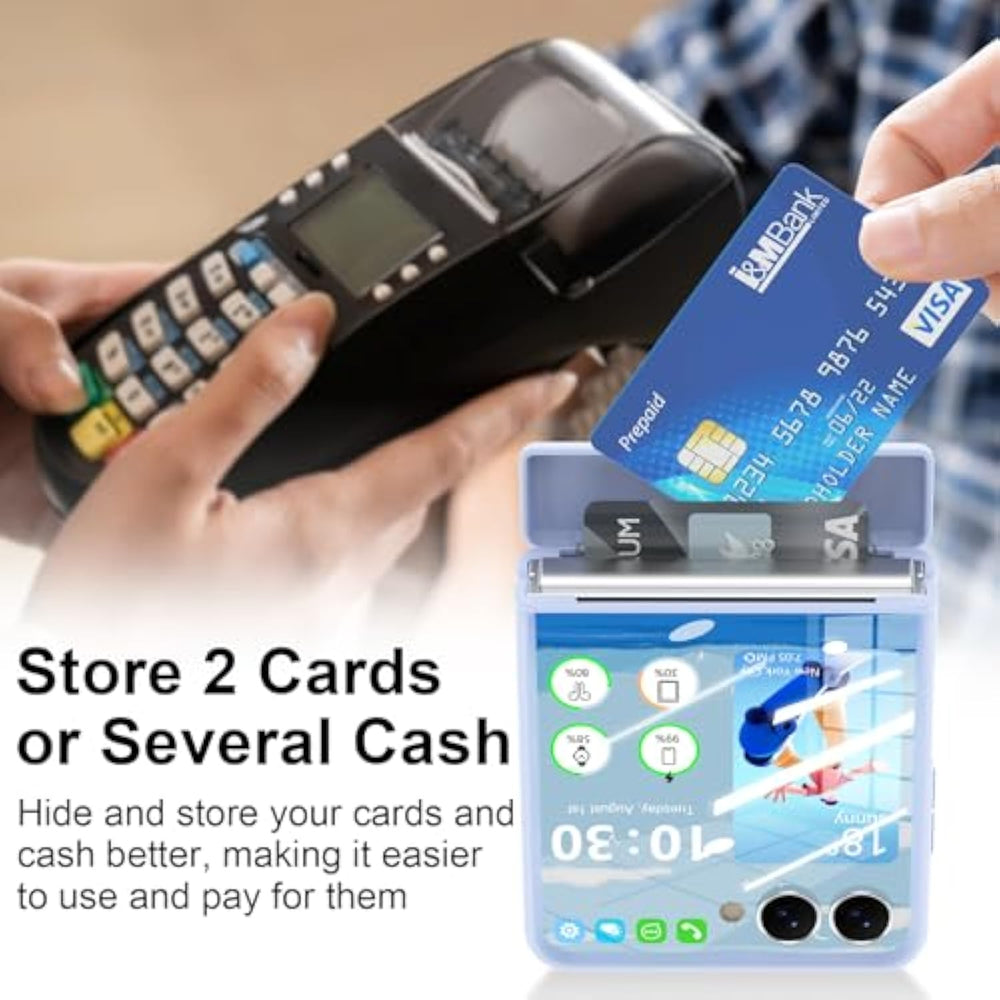 | ?Exact Fit? This Lightweight Z Flip 7 Case Clear With Ring Hinge Protection And Tempered Glass Screen Protector Designed Only For Samsung Galaxy Z Flip 7 Case 2025 Only - Compatible With Most 3Rd-Party Screen Protectors And Other Z Flip Accessories. | | ?Secure Wallet Feature?Hidden Card Wallet Is On The Back Of Galaxy Z Flip 7 Case, Which Can Store 2 Cards Securely, Put In Your Credit Card, Debit Card, Id, Driver'S License, Or Cash, Very Portable.You Needn'T Bring An Extra Card Bag If You Have This Phone Case. Slide Door Design Ensure Your Credit Card'S Safe. | | ?Unique Hinge Protection Design? Upgraded Exclusive Hinge Protection Fully Protect The Phone 360 Degrees,This Hinge Make Upper And Lower Case Connection More Simpler, Opening And Closing More Convenient Without Magnets.We Tested Countless Times, Just To Make