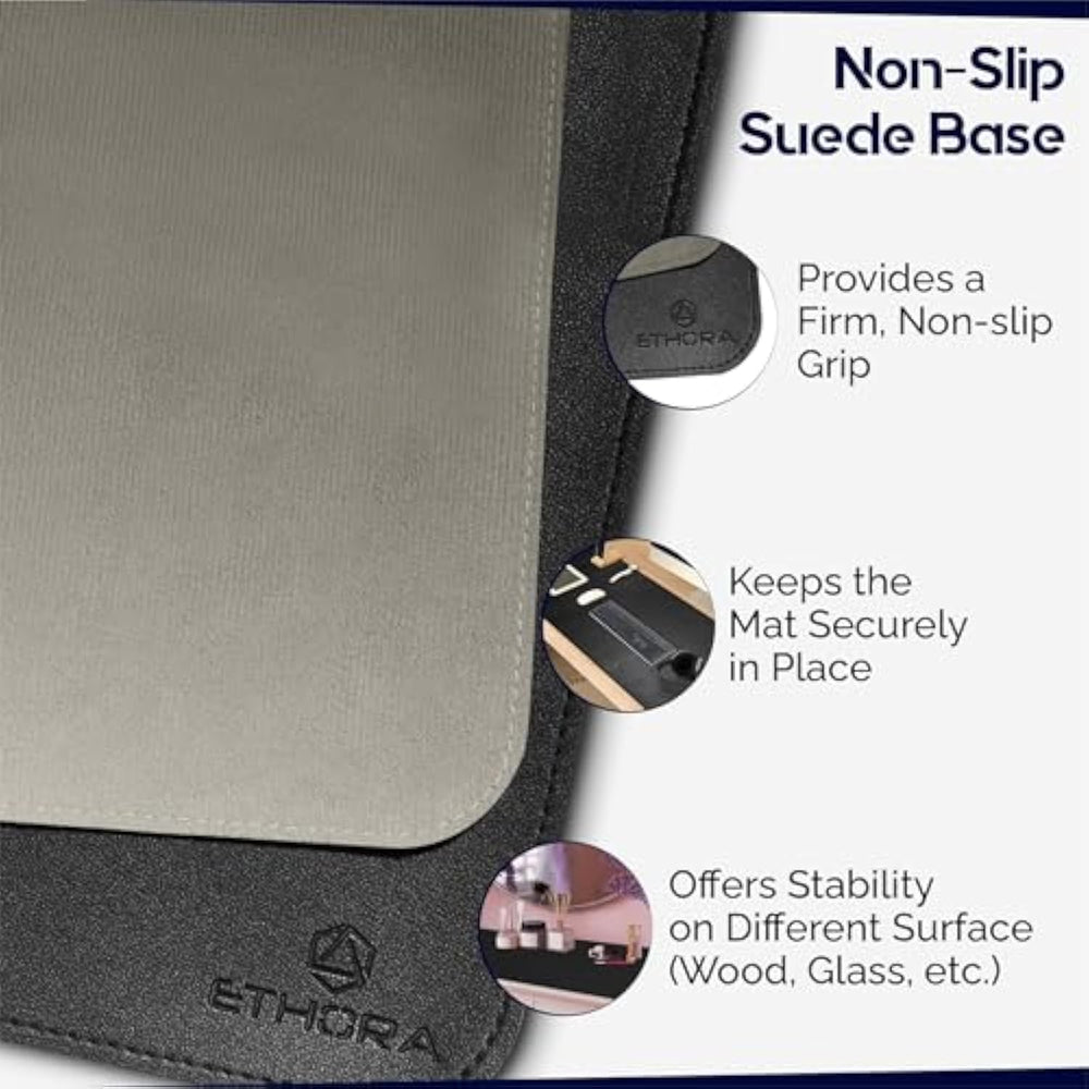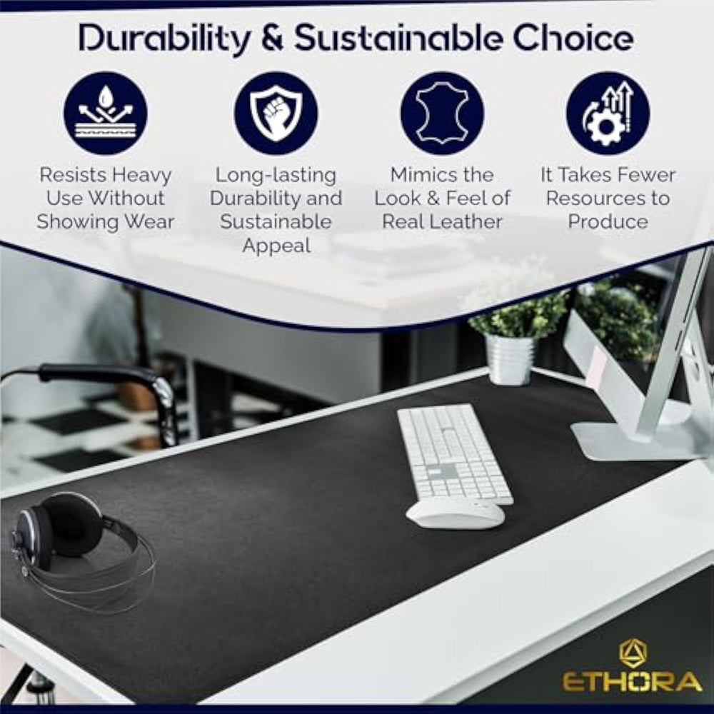 | Composition: Elegant Desk Mat Leather Pu Surface Mat With Non-Slip Base And Stitched Edges. | | Pu Leather Surface: Soft And Smooth Surface, Minimizes The Risk Of Scratching Or Damaging Objects Placed On The Mat, Resistant To Wear, Scratches And Tears For Long And Continuous Use, Water And Stain Resistant Making It Easy To Clean With A Damp Cloth, Maintaining Its Appearance For Longer. | | Suede Base: We Chose This Material For Its Base Due To Its Multiple Characteristics, Suede Is Known For Its Durability And Resistance To Wear, It Does Not Crack Or Dry Out Like Other Bases Over Time, Allowing You Greater Grip Power On The Surface. Surface That Supports It. | | Stitched Edges: Stitching Provides A Firmer Edge That Helps Maintain The Mat'S Shape, Preventing Fraying And Offering A Superior Option For Those Looking For A Durable And Attractive Product. | | Ecofriendly: Being A Synthetic Material, Pu Leather Is A More Ecological Material Than Genuine Leather, Since It Does Not Require The Use Of Animal Skins And Usually Has A Lower Environmental Impact In Its Production, Easy Maintenance And Visual Appeal For Its Various Applications. | | Packaging: We Not Only Think About Its Elegant Box, So That You Have The Benefit Of Presentation As A Gift, We Also Think About Safety, Resistance To Humidity And Cushioning In Its Transport So That The Mat Reaches Your Hands In Optimal Conditions. | |
