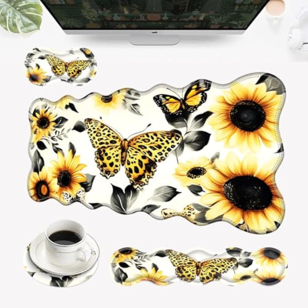 | ?4-In-1 Mouse Pad Set?Our Large Mouse Pad And Wrist Rest Set Includes Desk Pad (31.5X11.8Inch), Keyboard Wrist Rest(17.3X3.6Inch), Mouse Wrist Rest(6.7X3.6Inch), Cup Coaster(3.9X3.9Inch). No Need To Buy Separately, At A Super Cost-Effective Price. This Desk Pad For Keyboard And Mouse Is Large Enough To Fit Your Mouse, Gaming Keyboard, And Other Desk Items. Our Desk Pad Protector Can Keep A Clean, Uncluttered Desk. This Helps To Improve The Gaming Experience Or Work Efficiency In The Office. | | ?Exquisite Appearance?Our Extended Mouse Pad And Keyboard Wrist Rest Using Advanced Printing Technology, The Mouse Pad Has Clear Patterns, Bright Colors, Exquisite Patterns Bring Fun To Your Life, And Bring A Sense Of Relaxation When The Body And Mind Are Exhausted. Whether This Desk Mat With Wrist Rest Set Is For Study, Office, Game, Decoration Or As A Gift, Our Non-Slip Desk Pads With Wrist Support Is Very Suitable For You. | | ?Ergonomic Design?This Mouse Pad With Wrist Support Set Designed With Memory Foam And Soft Smooth Material To The Pads, Lightweight Comfortable And Durable For Your Daily Work Life. This Gaming Mouse Pad Wrist Support Set Is Contoured Ergonomi