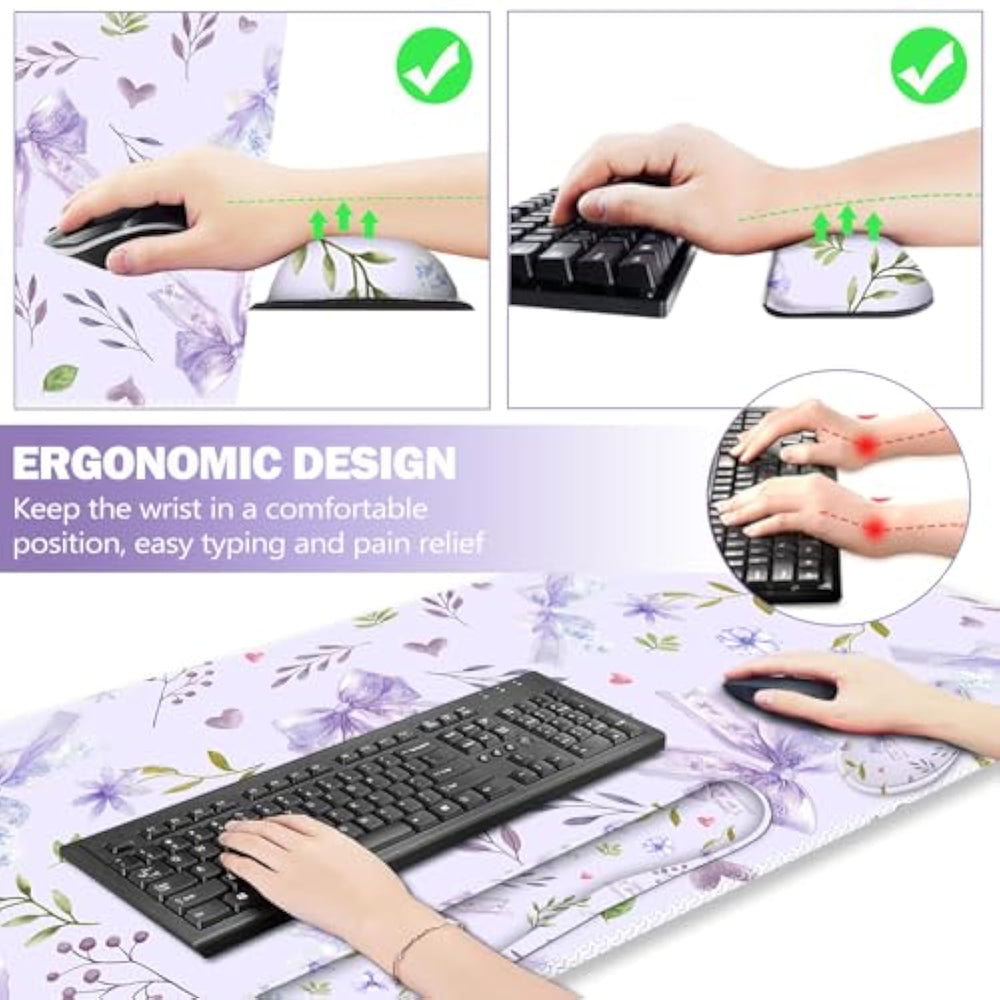 | ?4-In-1 Mouse Pad Set?Ergonomic Mouse Pad Includes Desk Pad (35X15.5Inch), Keyboard Wrist Rest(17.3X3.3Inch), Mouse Wrist Rest(5.4X2.9Inch), Cup Coaster(3.9X3.9Inch).No Need To Buy Separately, At A Super Cost-Effective Price. This Desk Pad For Keyboard And Mouse, Is Large Enough To Fit Your Mouse, Gaming Keyboard, And Other Desk Items. Keep A Clean, Uncluttered Desk. This Helps To Improve The Gaming Experience Or Work Efficiency In The Office. | | ?Exquisite Appearance?Our Mouse Pad Using Advanced Printing Technology, The Mouse Pad Has Clear Patterns, Bright Colors, Exquisite Patterns Bring Fun To Your Life, And Bring A Sense Of Relaxation When The Body And Mind Are Exhausted. Whether Desk Keyboard Mat Is For Study, Office, Game, Decoration Or As A Gift, Our Computer Pads For A Desk Mat Is Very Suitable. | | ?Zero Slip Stitched Edges?The Soft And Dense Non-Skid Nature Rubber Base Keeps This Desk Pad Firmly In Place. Just Immerse Into Your Work Or Games Without Worrying About The Annoying Mouse Pad Movement. And The Delicate Stitched Edges Can Prevent Wear, Deformation And Degumming In Prolonged Use. Design For Security And Durability, And Enhances The Aesthetic And Lifespan Of The Mouse Pad. | | ?Ultra-Smooth Surface?The Smooth Fabric Allows You Ease Moving Your Mouse Easily And At The Same Time Precisely Locate It, And Give Your Hand A Comfortable Environment To Operate Your Mouse. Optimized For Fast Movement While Maintaining Excellent Speed And Control During Your Work Or Game. Compatible With Mechanical And Optical Mice. | | ?Ergonomic Design?Designed With Memory Foam And Soft Smooth Material To The Pads, Lightweight Comfortable And Durable For Your Daily Work Life. This Gaming Mouse Pad Wrist Support Set Is Contoured Ergonomi