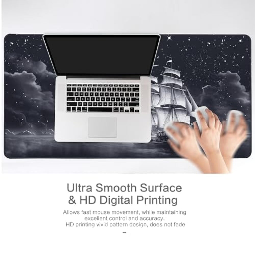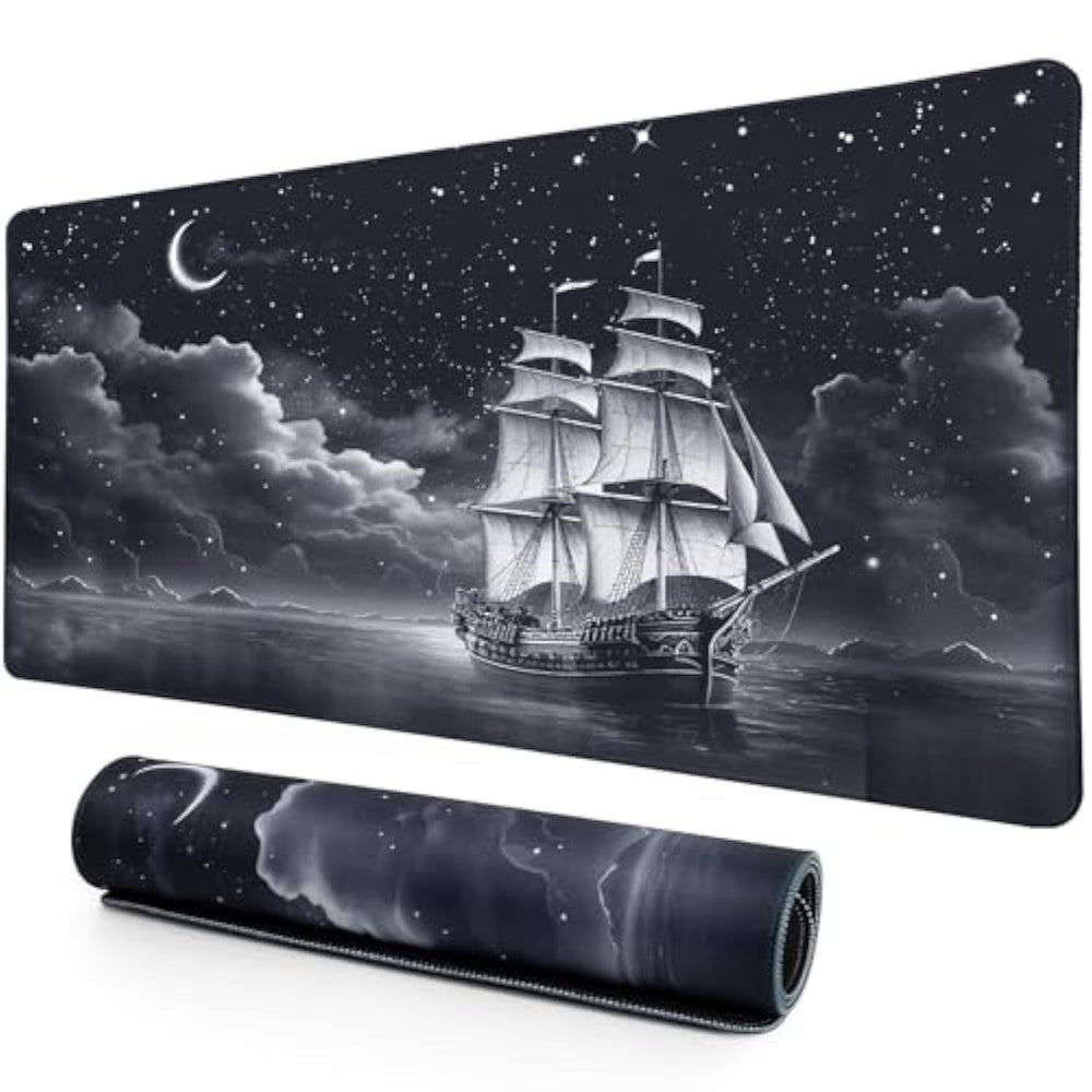 | Ultra Large Size Well Protection: 31.5X15.7 Inch Mouse Pad Provides Ample Room To Fit Your Gaming Mouse, Full-Size Mechanical Keyboard, And Other Desk Items, To Keep Your Desk Neat And Clean. Made Of Heat Resistant High- Density Textured Rubber Which Protects Your Desk From Scratches, Stains, Spills And Scuffs. | | Smooth Surface: This Extended Large Mouse Pad Adopts Micro-Weave Cloth Surface On Cover With Enhanced Command To Provide The Excellent Balance Between Glide And Control. | | Wide Using Occasions: This Type Of Mouse Pad Available For Different Kinds Of Occasions In Daily Life, Such As Desk Cover, Office, Home, Specially Design For The Game Lover! Ideal Gifts For Men, Women, Friends And Family Members. | | Sturdy Non-Slip Rubber Base: The Soft And Dense Non-Slip Rubber Base Keeps This Mouse Pad Firmly Grip In Your Desktop, Just Immerse Into Your Work Or Games Without Worrying About The Annoying Mouse Pad Movement. | | Spill Resistant Easy To Clean: Protects Your Desktop From Spilled Water, Drinks, Ink And The Other Liquid Accidentally. Easy To Clean, Just Wipe With A Wet Cloth Or Paper. | | Hd Digital Printing With Reliable Service: This Large Mouse Pad Design With A Vivid Moon Star Sailboat Pattern, Decorating Your Gaming Or Working Place! We Provide 12 Months After-Sale Service, Any Issues Pls Feel Ease To