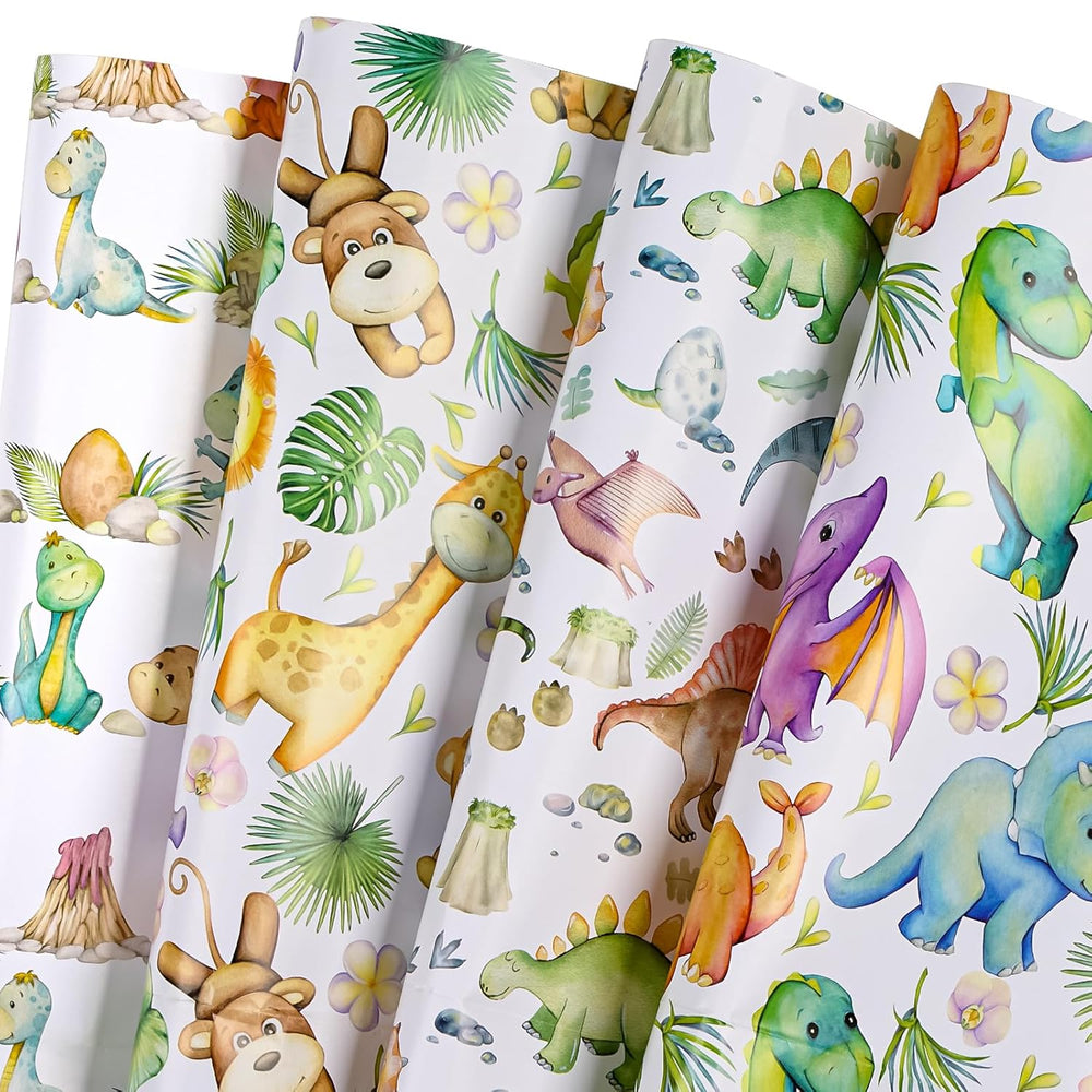 | Folded Sheets: The Package Includes 8 Sheets Of Flat Wrapping Paper. Each Sheet Measures 19.7 Inches Wide X 27.5 Inches Long And Is Folded For Easy Storage. It Is Suitable For Medium And Small Gifts. Baby Shower Design: Features 4 Versatile Designs, Adorable Watercolor Dinosaurs With Cactus, Tropical Leaves, Palm Trees, Volcanoes, Eggs, Cute Jungle Animals With Green Plants And Flowers Pattern, Bringing A Playful And Celebratory Touch To Any Presents. Premium Quality: Created With High-Quality Paper Materials, Thick And Not Easily Tear Or Rip. Item Came With Opp Bag To Prevent Wrapping Paper From Scratches And Reduce Dust. Use All Occasion: Perfect For Baby Shower, Baptism, Boys Birthday, Dinosaur Theme Party, Holiday Gifts Wrap, Especially Ideal For Dinosaur Lover. It Is Also Great For Diy Craft Project And Other Artistic Inspirations. Quality