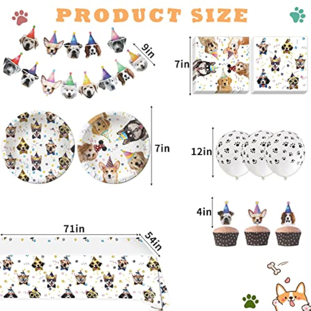 | 40% 300G White Cardboard | | ??Dog Birthday Party Supplies Include: 20Pcs 7"Dog Party Plates?Includes 2 Patterns?, 20Pcs 13" Puppy Party Napkins, 1Pcs Dog Face Birthday Banner, 1Pcs Table Cover, 10Pcs Paws Balloons, 6Pcs Cake Toppers, And Include Everything You Need To Throw A Wonderful Pet Party. These Dog Themed Birthday Party Supplies Will Happy Your Puppy Pets. | | ??High Quality Dog Party Decorations: Our Dog Party Platesnapkins Are Made Of Carefully Selected Odorless, Waterproof, Pure Natural Wood Pulp High-Quality Paper, Which Is Sturdy. Paws Latex Balloons, Which Are Made Of 100% High-Quality Latex, Not Burst Easily. Dog Themed Party Supplies Choose High-Quality Pvc Table Cover. These Plates, Napkins And Table Cover Are Disposable, Saving You Time To Cleaning. | | ??Unique Designsimple Layout: Each Dog Party Plate'S Pattern On Our Dog Birthday Party Supplies Plates And Napkins Are Different, The Pattern Design Is Very Fashionable, And Dog'S Expressions Are Very Happy And Excited. When Your Guests See This Dog Party Decorations, They Will Be Deeply Attracted And Praise The Puppy Party Decoration. You Need Few Minutes To Dress Up The Party And Easy To Decor Your Party. | | ??Puppy Birthday Decorations Are Versatile: This Dog Birthday Party Supplies Cutlery Can Be Used As A Birthday Party Decoration For Your Dog Pet, As A Decoration In A Dog'S Room, And As A Dog Themed Party, House Pet Theme Party, Puppy Shower, Kids Birthday Party And Etc. Doggy Birthday Party Supplies Will Make Your Party More Interesting And Attractive, Show The Love For Your Family Members. | | ??After-Sales Service: We Have Been Committed To Bringing