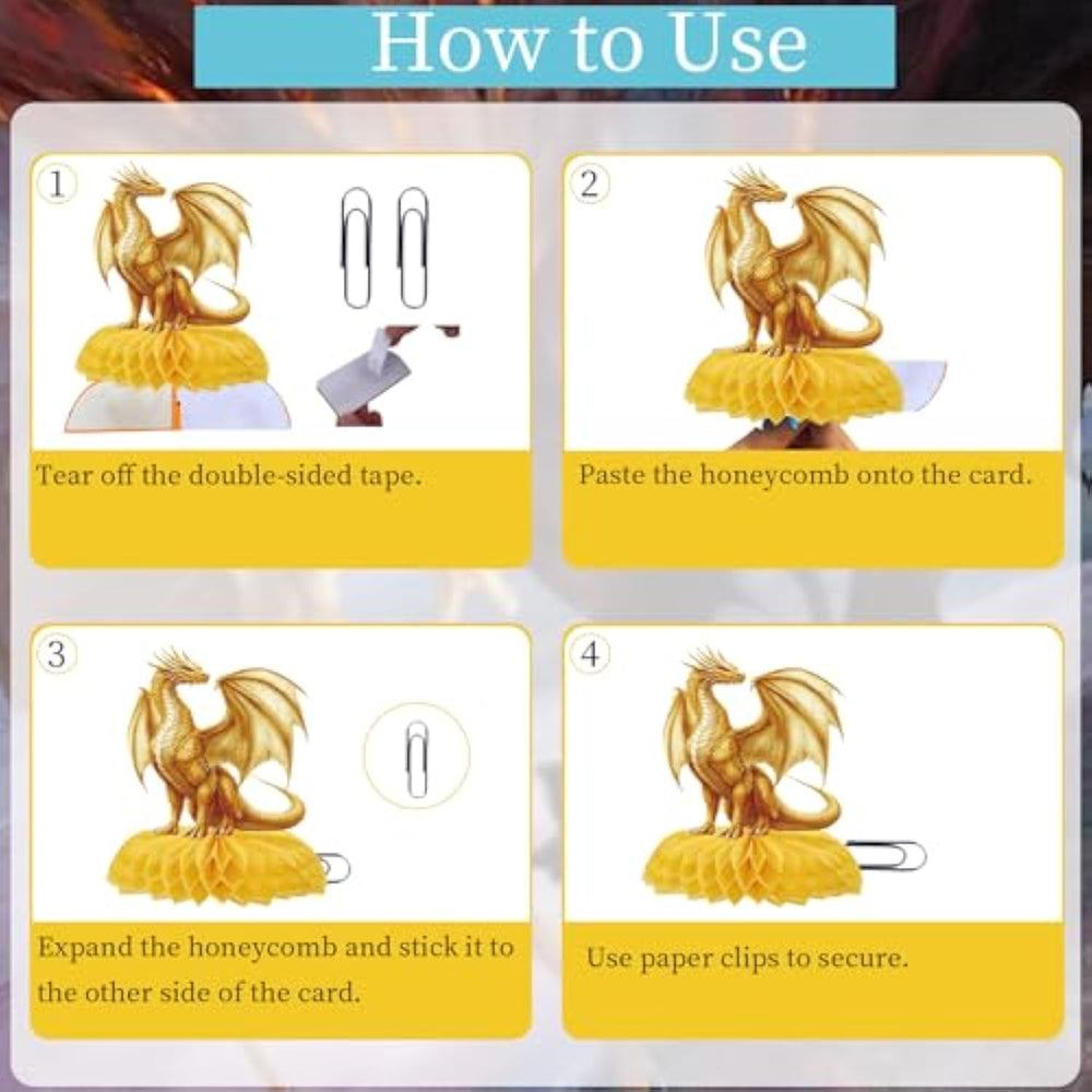 | Set Includes: You Will Get 9 Exquisite Dragon Honeycomb Centerpieces, A Total Of 9 Different Patterns In Different Colors, Rich And Interesting; Embellish Your Dragon Party | | Material: Dragon Birthday Party Decorations Are Made Of High Quality Material, Not Easy To Be Damaged, So That You Can Get A Better Using Experience; Indulge In The Fun Of Dragon Party Anytime And Anywhere | | Design: The Dragon Honeycomb Centerpiece Is Decorated With 9 Different Pattern Designs, Each Different Pattern Uses A Different Color, Delicate And Beautiful | | Easy To Use: First Remove The Sticker From The Dragon Themed Honeycomb Ball And Stick It On The Designated Area Of The Card; Then, Stick Another Honeycomb Ball Sticker On The Reverse Side Of The Card, And Finally, Fix It With A Paper Clip | | Occasion: Suitable For Dragon Theme Party, Dragon Birthday Party, Dragon Outdoor Party, Dragon Theme Baby Shower; It Will Leave Your Party With Wonderful Memories! | |