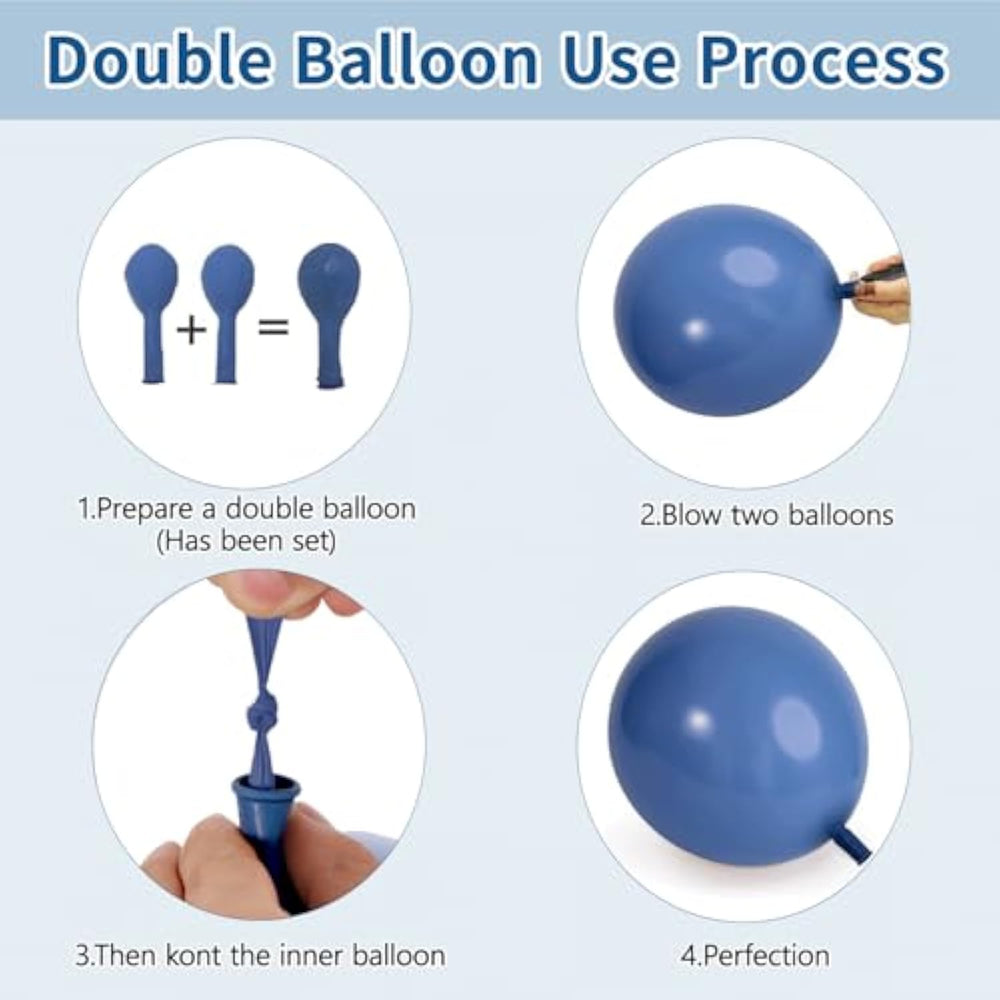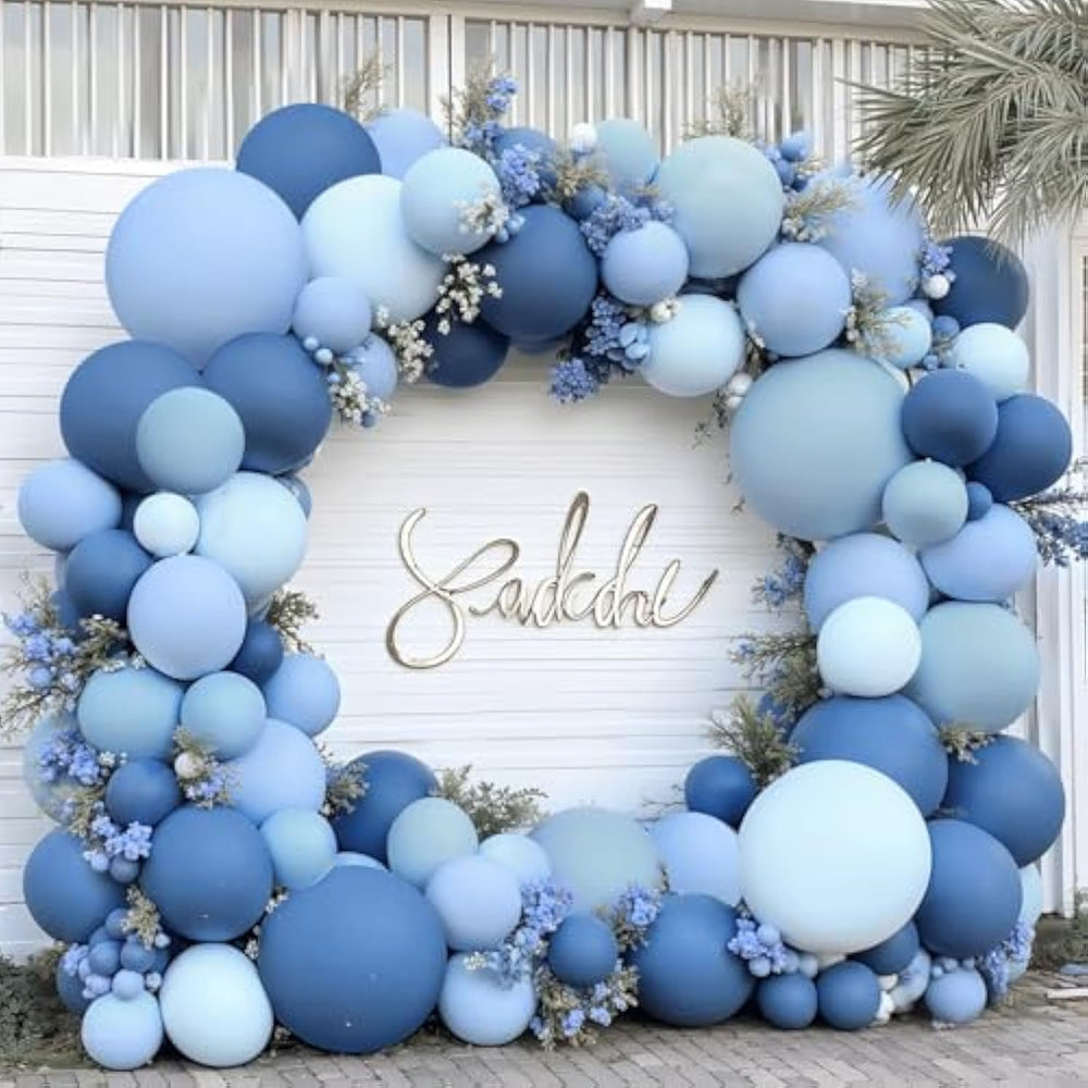 | ?Blue Balloon Arch?: These Double Stuffed Blue Balloons Garland Kit Includes: 21Pcs Double Stuffed Denim Blue Balloons, 21Pcs Double Stuffed Dusty Blue Balloons, 21Pcs Double Stuffed Light Blue Balloons, 21Pcs Double Stuffed Pastel Blue Balloons, 30Pcs 12Inch Sigle Layer Denim Blue And Dusty Blue Balloons. 1 Roll Of Balloon Strip Tape, 5Pcs Balloon Stickers. | | ?High-Quality Materials?: This Dusty Blue Balloons Arch Kit Are Made Of High-Quality Latex, Which Is Thicker Than Other Balloons, Not Easy To Pop And Safe For Children. And The Light Pastel Blue Balloons Can Long-Lasting At Least For One Week. | | ?Easy To Assemble?: You Can Easily Inflate Your Dark Denim Blue Balloon Arch Kit With An Air Pump (Please No More Than 85% Inflated). Making The Baby Blue Balloon Garlandus In The Strip And Stickers Included In The Package. If You Want A Blue Balloon To Float, Fill It With Helium. | | ?Wide Applications?: The Double Stuffed Blue Balloon Arch Is Suitable For Any Event, Such As Boy Birthday, Baby Shower, Bridal Shower, Graduation, Wedding, Anniversary, Father'S Day, Engagement, Gender Reveal Party. Etc. This Blue Balloon Arch Kit Will Make Your Party More Interesting. | | ?Please Note?: Please Avoid Exposing The Dusty Blue Balloon Arch To High Temperature, Sharp Objects Or Excessive Friction To Prevent Bursting. It Is Normal For Balloon To Oxidize After Being Inflated For A Period Of Time, Please Don'T Worry. | |