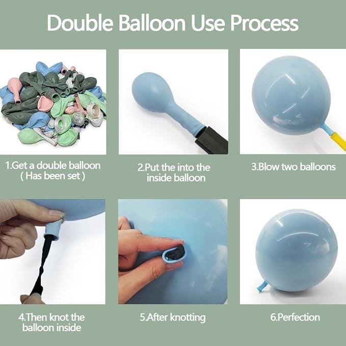 This Double Stuffed Balloon Garland Kit includes pastel dusty mist green, light green, dusty blue, pink, and beige balloons in various sizes, along with a balloon strip, glue dots, and white ribbon for easy assembly. Made from premium natural latex, the balloons are thick, durable, and safe for children, maintaining their shape and vibrant colors for hours when properly inflated. Ideal for creating full, elegant garlands or arches, this kit is perfect for baby showers, gender reveal parties, birthdays, bridal showers, garden parties, and floral-themed celebrations. Easy to inflate and assemble, the balloons can be arranged over tables, doorways, or other areas to add a festive and stylish touch to any event.