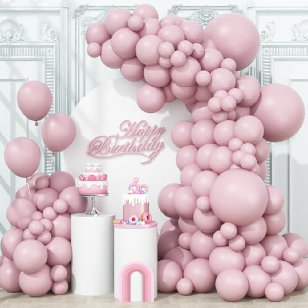 | Dusty Pink Balloon Garland: Includes 123Pcs Dusty Pink Balloons, With 3 Pieces Of 18 Inches, 20 Pieces Of 12 Inches, 35 Pieces Of 10 Inches, And 65 Pieces Of 5 Inches. Also Included Are A 33-Foot Roll Of Ribbon, Balloon Glue, And A Balloon Chain. These Different Sizes Of Balloons Can Meet Your Various Party Decoration Needs And Create A Perfect Balloon Arch That Will Make Your Party Or Event Stand Out | | Reliable Quality Balloons: The Balloons Are Made From Premium Latex, Making Them Less Likely To Burst Or Be Punctured. These Party Balloons Are Safe, Non-Toxic, And Reusable. Compared To Ordinary Balloons, They Are More Durable And Maintain Their Shape Well After Inflation, So You Don'T Have To Worry About Them Popping Before The Party Ends | | Easy To Assemble: The Set Comes With Ribbons, Glue, And A Balloon Chain, Making It Easy To Use. You Can Unleash Your Creativity And Combine Different Colored Balloons To Create Various Shapes Of Balloon Garlands. You Can Even Use Different Sizes Of Balloons To Make A Perfect Dusty Pink Balloon Garland, Making Your Party Unforgettable | | Suitable For All Occasions: Dusty Pink Balloons Are Excellent Decorations For Party Supplies. You Can Create A Balloon Garland Arch With The Dusty Pink Balloons Or Mix And Match With Other Colored Balloons From The Store. The 123Pcs Dusty Pink Latex Balloons Can Be Used For Girls Women Birthday Parties, Mother'S Day, Anniversaries, Valentine'S Day, And More. These Dusty Pink Balloon Garlands Will Definitely Bring A Unique Experience To Your Party | | Usage Tips: Latex Balloons Of 10 Inches Or Larger Can Be Filled With Air Or Helium. Do Not Inflate The Balloons More Than 90% To Achieve The Perfect Shape. Avoid Exposure To Sunlight, Sharp Objects, And Excessive Friction. Note: A Small Amount Of Dust On The Balloons In The Package Is Safe And Can Prevent The Balloons From Sticking Together | |