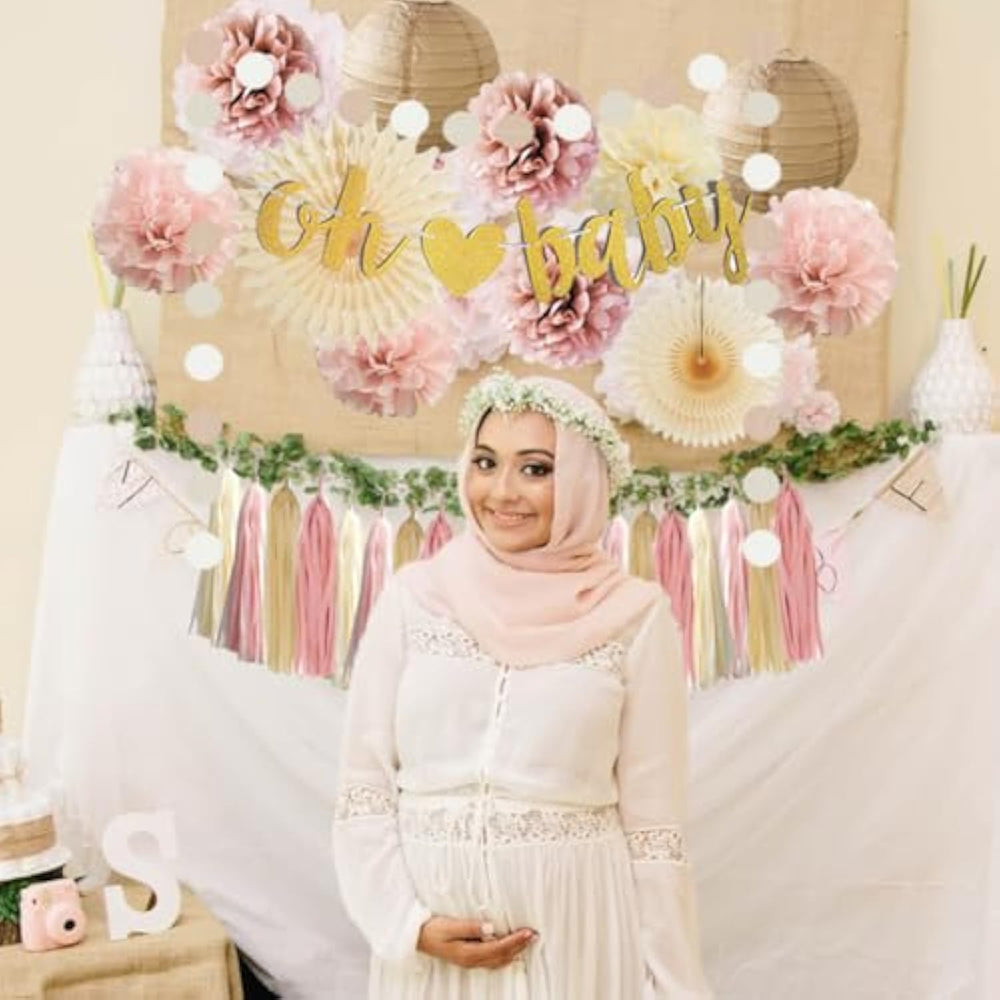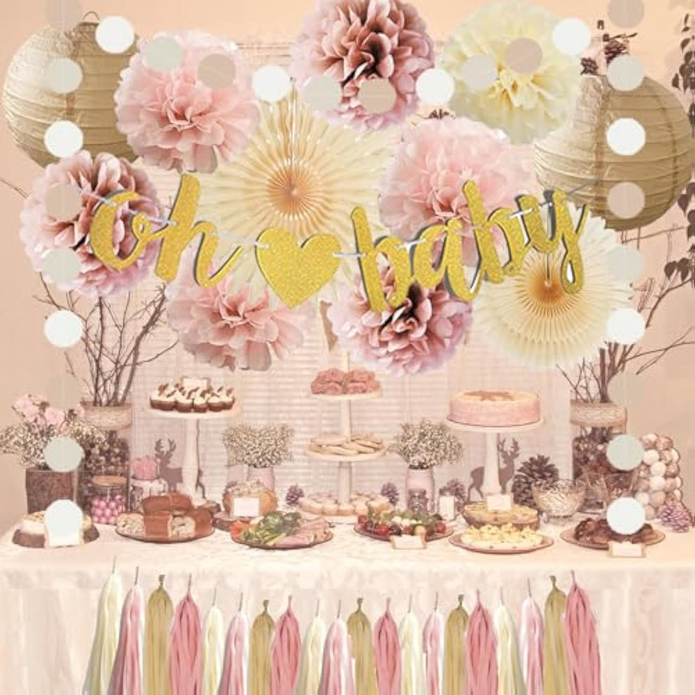 | ?Boho Pink And Beige Baby Shower Decorations Kit? 2Pcs Beige Paper Fans Decorations, 7Pcs Tissue Paper Pom Poms Dusty Rose Blush Pink And Beige, 2Pcs Champagne Gold Paper Lanterns, 1Pc Oh Baby Banner Gold, 1Pc Paper Garland Circle Dots, 20Pcs Dusty Rose Cream Boho Tassel Garlands | | ?Diy Joy? In Order To Avoid Any Possible Damage During Transportation, This Brown Dusty Pink Baby Shower Decorations Set Is Packed Flat. You Could Decorate Your Baby Shower Party With Your Family Or Friends To Enjoy A Happy Time Together. | | ?Unique? This Oh Baby Beige Blush Pink Baby Shower Decorations Kit Is Super Cool, You Could Use It Anywhere According To Your Need And Your Preference | | ?Material? Paper Fans, Paper Pom Pom Flowers, Paper Lanterns And Tassel Garlands Are Super Light And Fun To Use. | | ?Satisfaction? If The Boho Baby Shower Decorations For Girl Set You Received Is Defective Or You Just Don'T Like It, Please