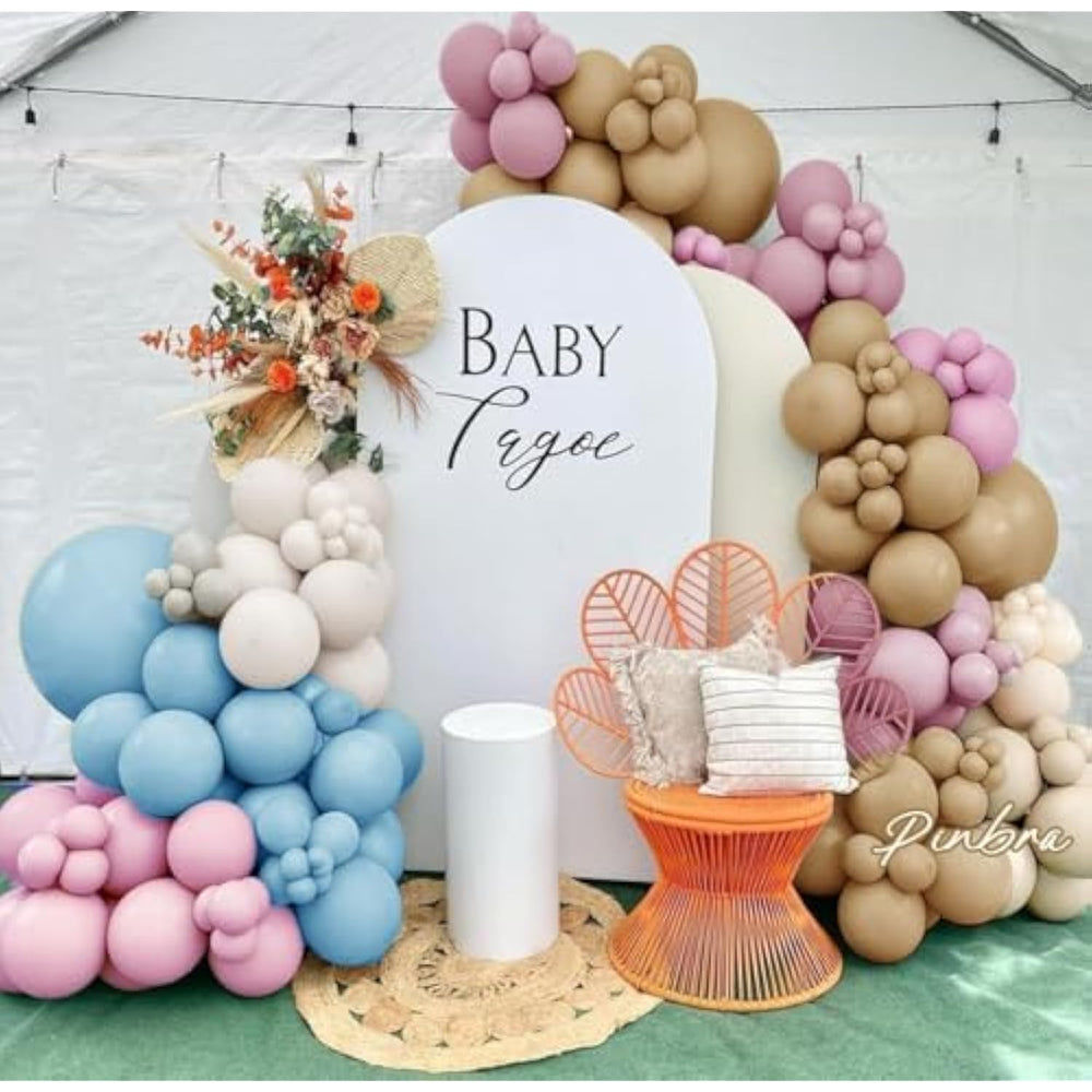 Double Stuffed Pink Blue Brown Balloons - Our Pastel Pink Blue Balloon Garland Kit Include 5'', 12”And 18” Dusty Pink, Dusty Blue, Pearl White Sand, Apricot Nude Balloons. We Add Double Stuffed Dusty Pink Blue Brown Balloons To Make Your Gender Reveal Balloon Arch More Unique! If You’Re Looking To Have A Rich Baby Shower Balloon Arch As Full As The Photo, You May Need Two Packs Or More. | High-Quality Reusable - These Double Stuffed Pastel Pink And Blue Balloons Are Safe, Non-Toxic, And 20% Thicker Than Common Gender Reveal Balloons. They Are Highly Durable And Long-Lasting, Making Them Less Prone To Breakage. Some