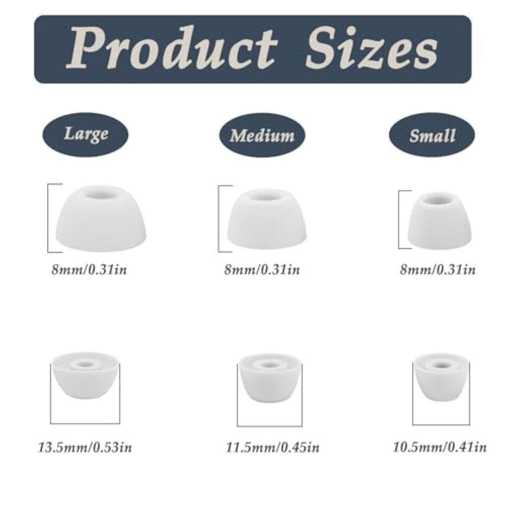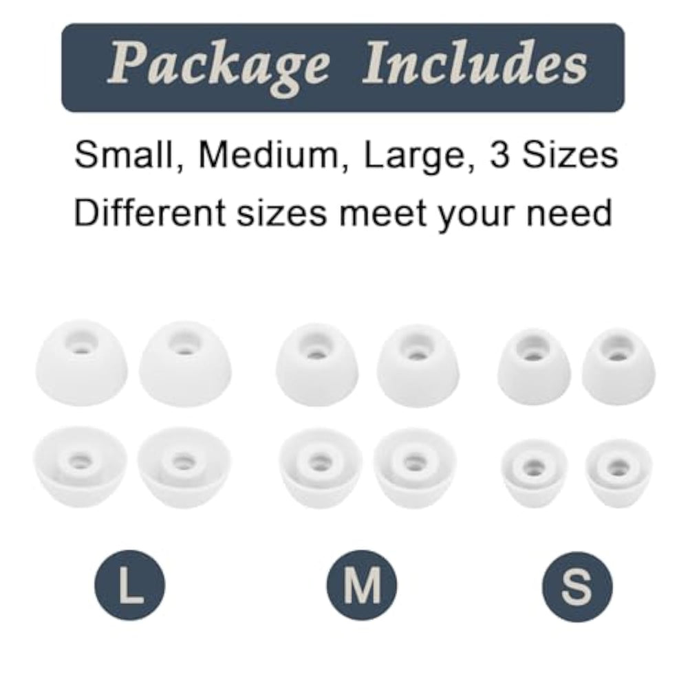 | ??Compatibility?: These Replacement Ear Tips Only Fit Samsung Galaxy Buds 2 Pro, And Can Fit In Case. Do Not Fit For Other Earphones. Please Check Your Earphones' Model Before Purchase! | | ??Package?: The Package Includes 6 Pairs Of Galaxy Buds Pro 2 Silicone Earbud Tips Replacement. There Are 3 Different Sizes, Small , Medium And Large, You Can Find The Perfect Fit For Your Ears. The Ear Caps Meet Your Different Needs, Ensuring Maximum Comfort. | | ??Material?: Our Earbuds Tips Are Made Of Silicone, Which Are Durable, Flexible, Replaceable, And Removable. Due To The Material, The Ear Buds Tips Are Soft To Touch And Comfortable For Your Ears. Besides, The Replacement Silicone Ear Tips Provide More Noise Isolation, In-Ear Stability And A Lasting Comfort. | | ??Comfortable?: The Eartips Set Utilizes A Streamlined Design, So They Won'T Bring You Pain For Long-Last Using. At The Same Time, Eargels Are Flexible, Forming A Tight Seal With The Ear Canal To Avoid Sound Leakage, Giving You A Good Wearing Experience. | | ??100% Satisfaction Service? Offers Excellent Sales Service And After-Sales Experience. We Hope To Provide The Best And Most Affordable Replacement Earbuds Ear Tips To Every