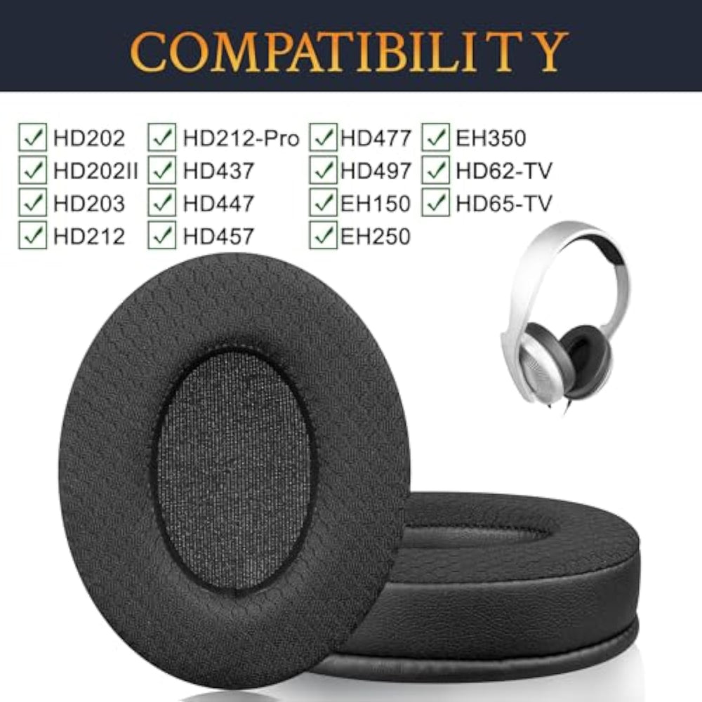 | ??Compatibility: Fit Perfectly On Hd202/Hd202Ii/Hd203/Hd212/Hd212-Pro/Hd437/Hd447/Hd457/Hd477/Hd497/Eh150/Eh250/Eh350/Hd62-Tv/Hd65-Tv Headphones. Please Confirm Your Headset'S Model Before Purchase. | | ??Our Ingenuity: Experience Ultimate Comfort With Our High-Quality Football Texture Fiber And High-Density Foam, Designed To Wick Away Sweat And Antislip Even During Long Use Sessions. | | ??Enhanced Sound: Your Old Earpads Negatively Affect The Sound Quality Of Your Headphones, While Our Precisely Modeled Earpads Will Not Affect The Sound Performance Of Your Headphones And Make Your Headphones Look Brand-New Again. | | ??Flawless Installation: Our Earpads Perfectly Fit Your Headsets And You Can Complete The Entire Installation Within A Few Minutes. | | ??The Professional Ear Pads Manufacturer: We Added Stitching And Mighty Glue On The Inside Seams Of Each Earpad To Prevent Them From Splitting. We Continue To Develop More Professional And Ergonomic Ear Pads. Please