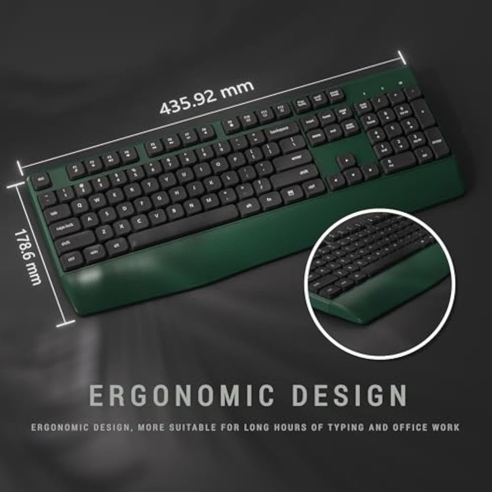 | Ergonomic Comfort Wrist Support – Split-Style Full-Size Wireless Keyboard And Vertical Ergonomic Mouse With Built-In Cushioned Wrist Rest Help Reduce Wrist Strain And Enhance All-Day Typing Comfo | | Stable Bk Chipset 2.4Ghz Wireless – Powered By Advanced Bk Chipset And 2.4Ghz Wireless Tech For A Stable, Lag-Free Connection Up To 33Ft (10M). Easy Plug-And-Play Setup With A Single Usb Receiver | | Comfo Mouse With Silent Clicks Power Button – Ergonomic Wireless Mouse Features Whisper-Quiet Buttons For Minimal Noise And A Convenient Power Switch To Conserve Battery When Not In Use | | Full-Size Keyboard With Multimedia Hotkeys – Includes 104 Responsive Keys, Numeric Keypad, And 12 Shortcut Keys For Productivity. Durable Membrane Switches Deliver A Quiet, Comfortable Typing Experience | | Wide Compatibility Energy Efficient – Works With Windows 7/8/10/11, Mac Os, Chrome Os. Auto-Sleep Mode Prolongs Battery Life; Requires 1 Aaa And 1 Aa Batteries (Not Included) | |