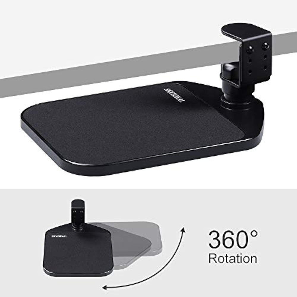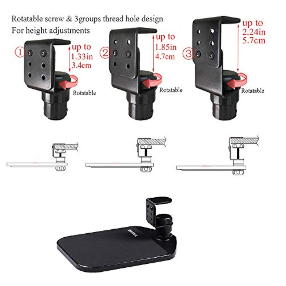 | Keyboard Wrist Rest Pad And Mouse Silica Gel Support Ergonomic Computer Use. Adjustable Clamp Can Fit Different The Thickness From 0-2.24Inch (0-5.7Cm) Of Desks.With No Tools Required And No Damage To Your Existing Desk. | | Rotating Design Wrist Rest -360 Rotation Ergonomic Mouse Pad Wrist - Fashionable Metal Carbon Steel+Abs Adjustable Computer Wrist Rest Tray | | Ergonomic Mouse Pad Wrist Eradication Flight Distance From The Desktop, Springy, Soft, Comfortable And Fatigue-Free. | | Strong And Sturdy Metal Carbon Steel+Abs+Memory Cotton Material. | | Note: The Red Lubricating Oil Of Platform Hole Is For Reducing Friction Between Clamp And Platform,It'S A Healthy Products. | |