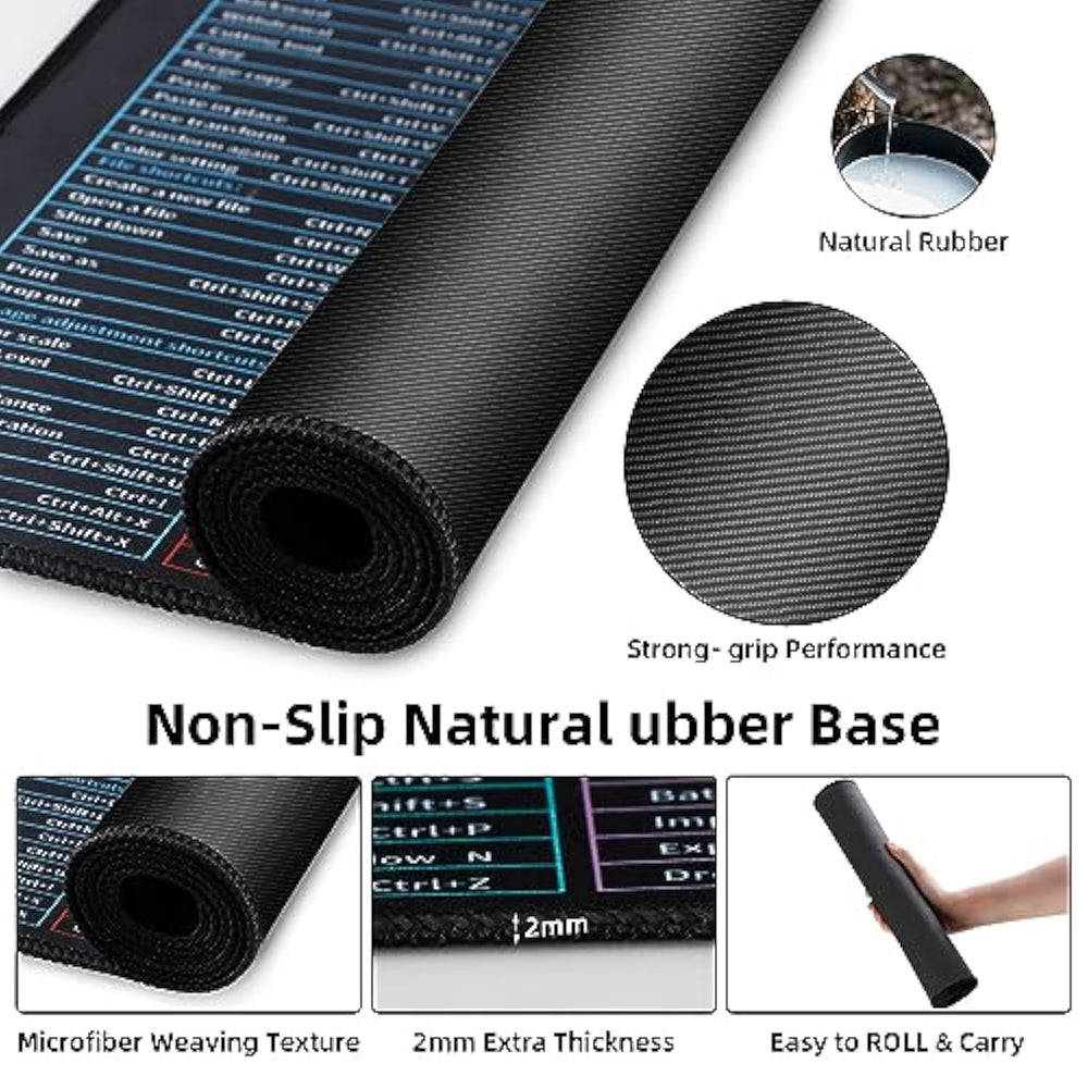 | ?Xl Spacious Workspace?This 31.5” X 11.8” Large Desk Mat Fits Keyboards, Mice, And Office Accessories, Providing Ample Space For Spreadsheets, Gaming, Or Multitasking. Non-Slip Rubber Base Keeps It Stable During Intense Work Or Gameplay. | | ?Built-In Office Shortcut Guides?Boost Productivity With Quick-Reference Shortcuts For Spreadsheets, Coding, Or Document Editing. Fade-Resistant Hd Printing Ensures Quick Access To Shortcuts For Faster Spreadsheet Editing And Document Formatting. | | ?Easy-Clean Mousepad?Spill-Resistant Large Mouse Pads Wipes Clean In Seconds With A Damp Cloth—Ideal For Coffee Spills Or Snack Crumbs. Odor-Free, Scratch-Proof Surface Retains Vibrant Colors Even After Repeated Use, Perfect For Busy Office Environments. | | ?Premium Office Desk Mat?Durable Double-Stitched Edges Prevent Fraying, While The Smooth Fabric And Natural Rubber Base Ensure Ergonomic Comfort For Typing And Mouse Control. | | ?Versatile Gaming Office Pad?Silky-Smooth Surface Enhances Precision For Gaming Mice, While The Non-Slip Office Desk Pad Stays Firmly In Place During Fast-Paced Action. Heat-Resistant And Scratch-Proof—Equally Suited For Crunching Numbers Or Dominating Games. | |