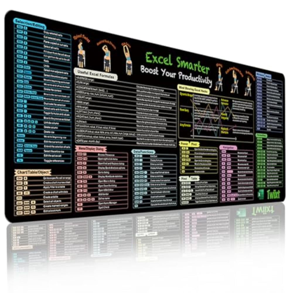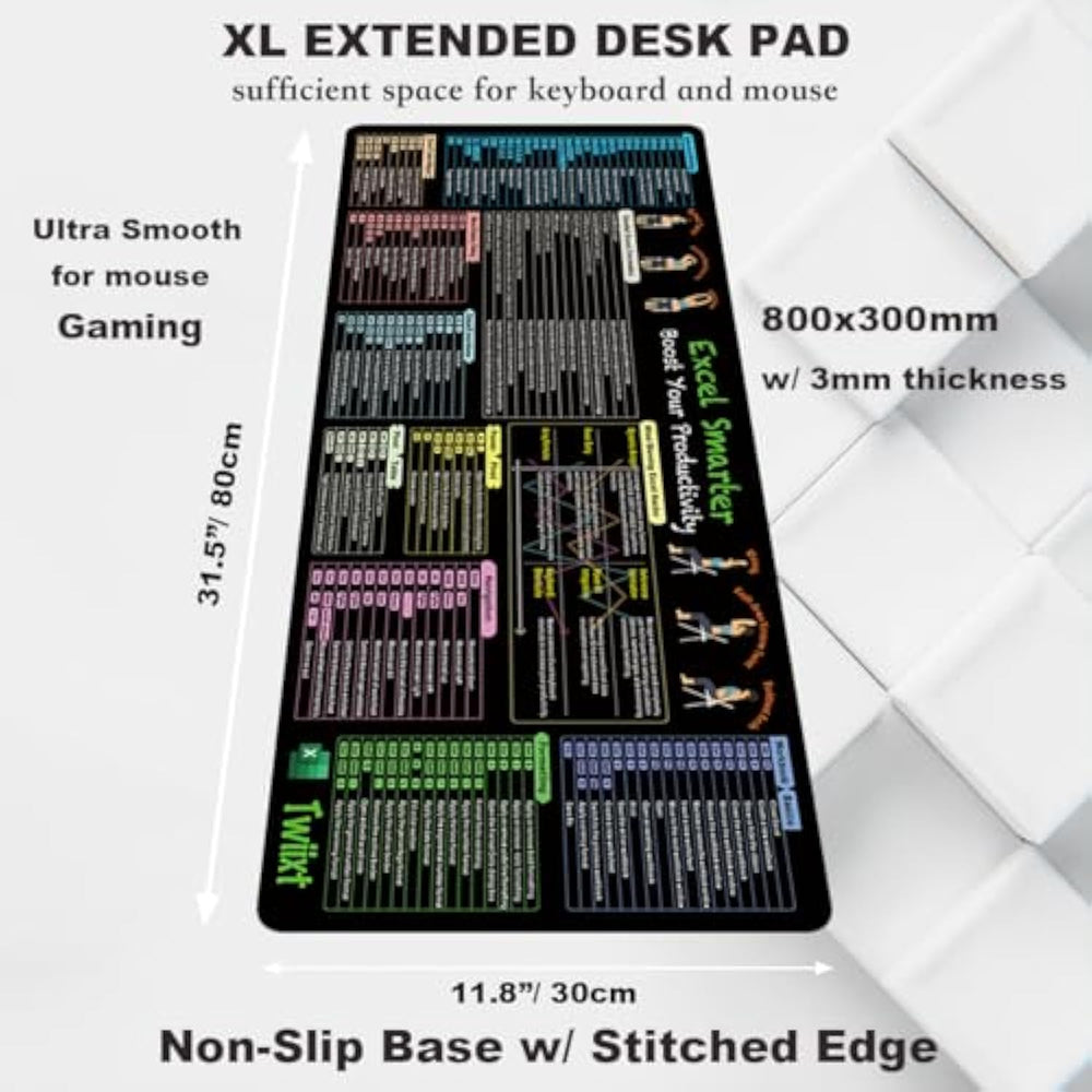| ? Large, Comfortable Workspace For Work And Play This Excel Cheat Sheet Desk Pad Boasts An Xl Size Of 300×800×3Mm (11.8"×31.5"×0.12")—Big Enough For Your Keyboard, Mouse, And Plenty Of Elbow Room. Whether You’Re In The Office, Studying, Or Gaming, It’S Your Ultimate Choice For A Spacious, Clutter-Free Desk. | | ? All Your Excel Shortcuts In One Place Stop Hunting For Commands. This Desk Pad Compiles 11 Practical Categories Of Excel Shortcut Keys, Plus The Meanings Of Popular Excel Functions And Computer Fn Keys. Tackle Spreadsheets Faster, Boost Your Workflow, And Transform How You Handle Data. | | ? Color-Coded For Quick Navigation ’S Smart Color-Coded Layout Organizes Common Shortcuts, Editing, And Formatting, Helping You Spot What You Need At A Glance. Save Time, Reduce Mistakes, And Keep Your Projects Moving Efficiently. | | ? Crisp, Bright Printing That Lasts Enjoy Clear, High-Resolution Graphics Thanks To Advanced Inkjet Technology. No Odor From Old-School Printing Methods—Just Vibrant Visuals That Stay Sharp And Easy To Read, Even With Daily Use And Cleaning. | | ? Silky Smooth Waterproof Surface Crafted From High-Quality Waterproof Cloth, This Desk Pad Delivers A Smooth, Responsive Surface For Precise Mouse Control. Spills Just Wipe Clean. Built To Handle Over 50 Cleanings Without Fading. | | ? Built Tough With Non-Slip Stability Features Exquisite Double-Stitched Seams That Resist Fraying, Plus A Non-Slip Rubber Bottom Pad That Keeps Your Mat Locked In Place—Even During Intense Work Or Gaming Sessions. | |