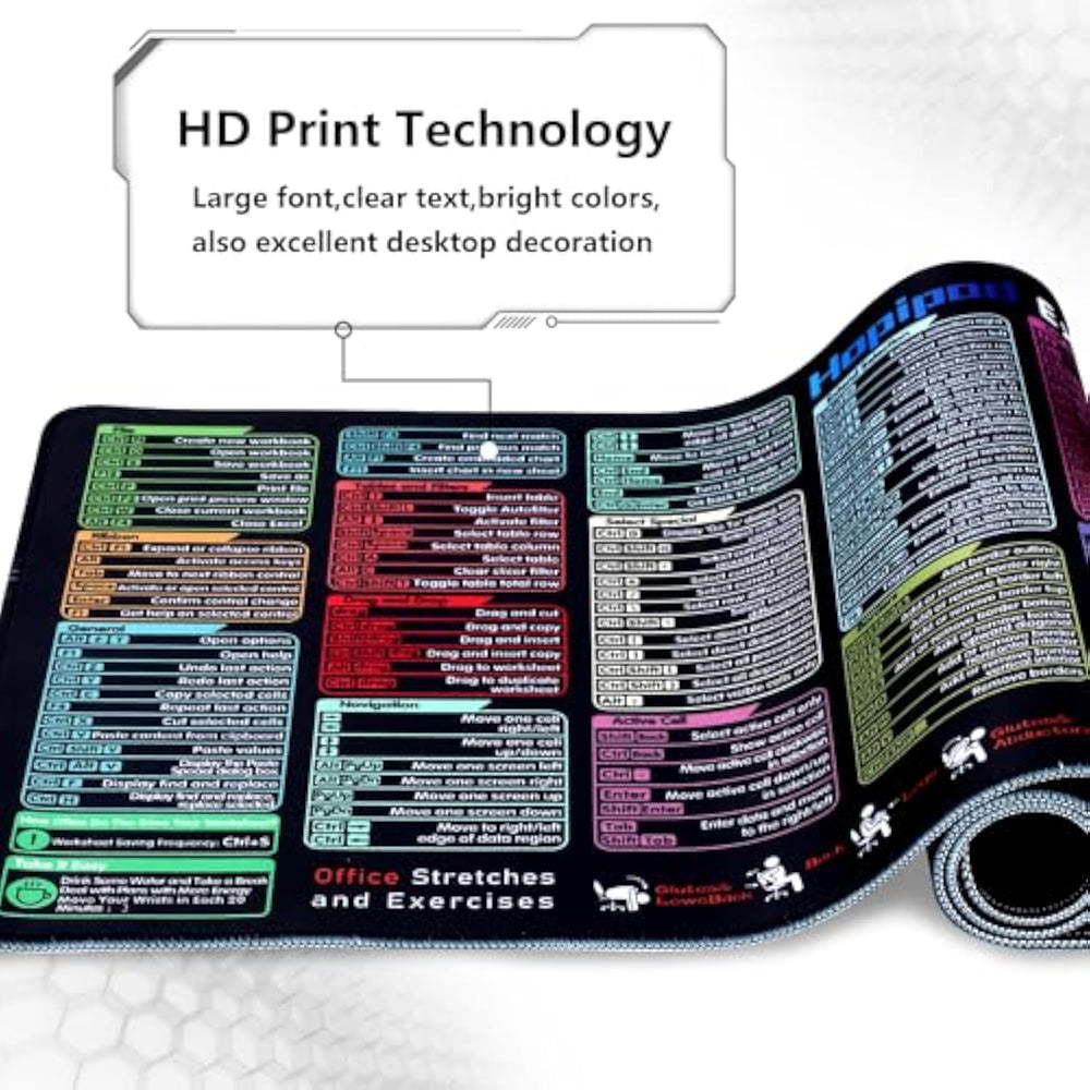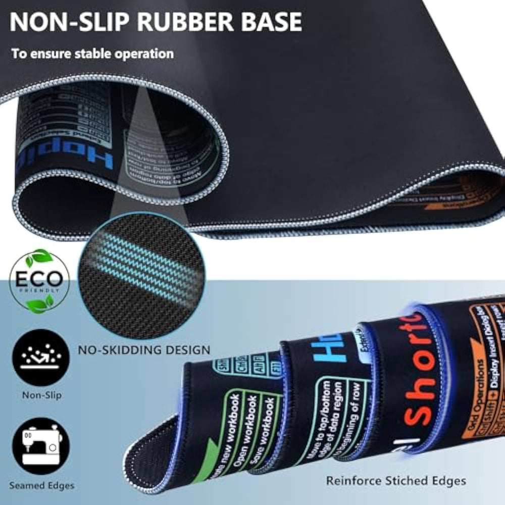 | ?Necessary Office Supplies?Our Excel Mouse Pad For Desk Is Designed For Comfort And Productivity. Measuring At 31.5X11.8 Inches, It Provides Ample Space To Accommo Your Mouse, Keyboard, And Other Desk Essentials. Featuring Key Excel Shortcuts And Simple Office Stretches, This Computer Mat Helps You Work Efficiently While Staying Refreshed Throughout The Day. | | ?Hd Printing?The Extra Large Excel Cheat Sheet Desk Pad Adopts High-Tech Printing Technology To Ensure Clear Patterns And Bright Colors. With Quick Access To Vital Excel Shortcuts And Guided Stretching Exercises, The Shortcut Mouse Pad Keeps You Sharp And Relaxed, Making It The Perfect Office Accessories For Any Busy Professional. | | ?Smooth Surface Non-Slip Base?Experience Smooth And Precise Mouse Control With Our Excel Shortcut Keyboard Mat. Featuring An Ultra-Smooth Surface, It Allows For Effortless Movement And Accurate Tracking. The Desk Mouse Pad Kit'S Non-Slip Rubber Base Holds The Pad Securely In Place, Preventing The Office Desk Mat For Desktop From Slipping During Intense Gaming Or Fast-Paced Work. | | ?Invisible Seams Waterproof?Our Gaming Excel Shortcuts Mousepad Has A Waterproof Coating, The Surface Can Be Easily Cleaned With Water Or A Damp Cloth. Its Heat-Resistant Feature Allows You To Enjoy Coffee Freely While Working. It Also Has Invisible Stitched Process To Avoid Edge Damage Caused By Long-Term Use. This Design Effectively Extends The Service Life Of The Keyboard Shortcut Mouse Pad And Is Suitable For Computers And Laptops. | | ?Multifunctional?: Not Only Can It Be Used As A Anti Slip Keyboard Pad With Shortcuts, It Can Also Be Used As A Desk Pads On Top Of Desks To Protect Your Desk From Scratches And Wear. You Can Also Use It As A Gift To Your Relatives And Friends Who Are About To Go To School Or Start A Job, To Help Them Better Integrate Into The New Environment. If You Have Any Questions Please