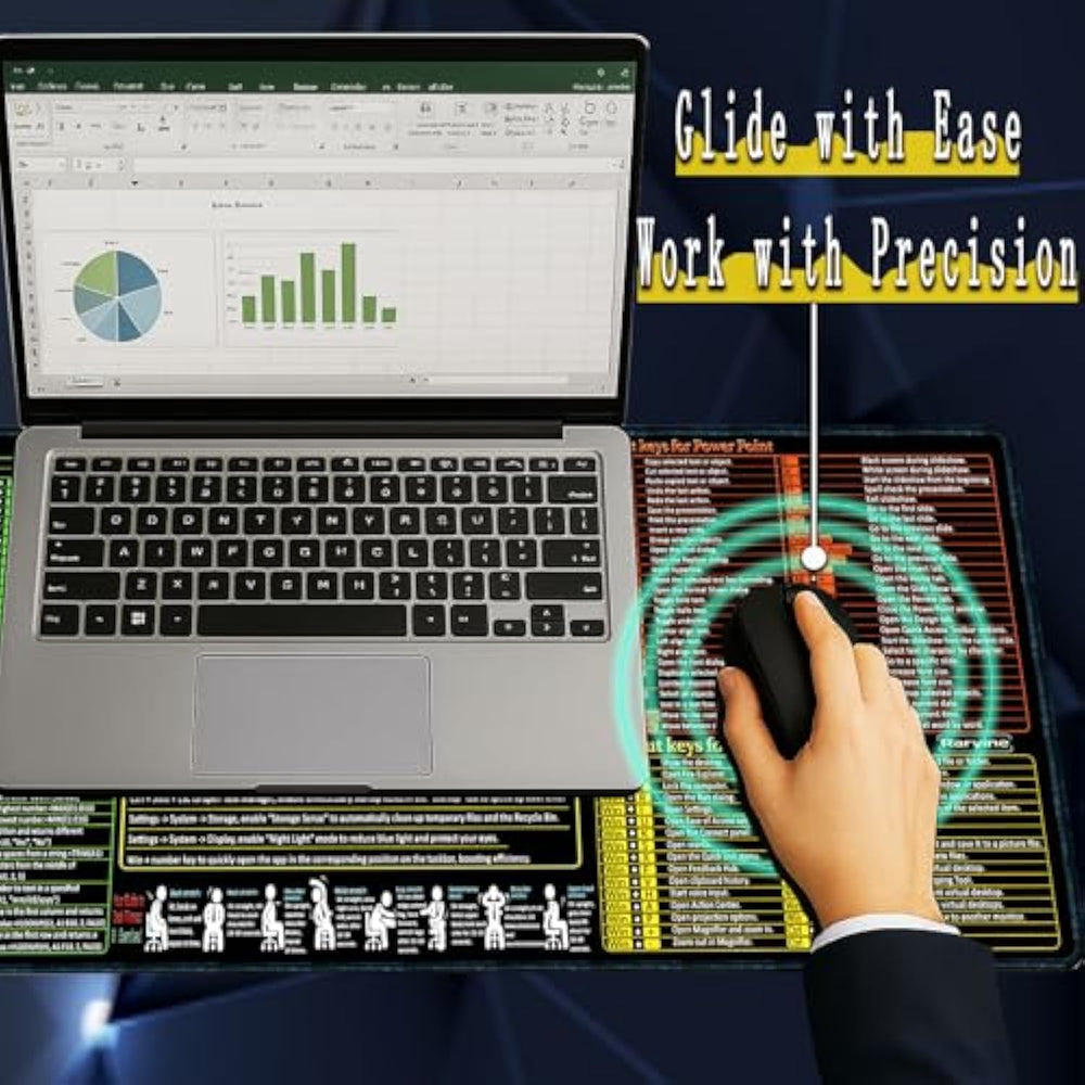| Excel Cheat Sheet Desk Pad:This Excel Shortcuts Mouse Pad Is A Reliable Desk Companion, Showcasing Key Shortcuts For Excel, Word, Powerpoint, And Windows. It Includes Practical Information And Shortcut Keys To Help You Work More Efficiently On Your Daily Tasks. | | Large And Practical Size: Measuring 31.5 X 11.8 Inches (800X300X3Mm), This Excel Mouse Pad Serves As Both A Mouse Pad And Desk Mat, Offering Generous Space For Your Computer, Keyboard, And Mouse. Ideal For Use In The Office Or At Home. | | Clearly Organized And Easy To Use:Excel, Word, Powerpoint, And Windows Shortcut Keys Are Grouped And Organized For Easy Reference, Making This Desk Pad A Helpful Tool For Both Beginners And Experienced Users. | | Smooth And Accurate Control:The Smooth Fabric Top Ensures Accurate Mouse Movements, While The Non-Slip Base Keeps The Pad Securely In Place, Delivering A Stable And Comfortable User Experience. | | Long-Lasting And High-Quality Design:This Mouse Pad Features Premium Fade-Resistant Printing, Ensuring That Shortcut Details Remain Clear And Detailed Over Time. The Reinforced Stitched Edges Add Durability For Extended Use. | | Spill-Resistant And Easy To Maintain:The Waterproof Top Layer Protects Against Spills And Is Easy To Maintain, Ensuring Long-Term Durability And Practicality. | |