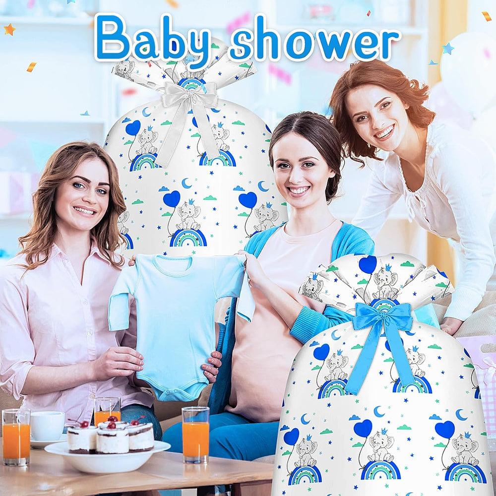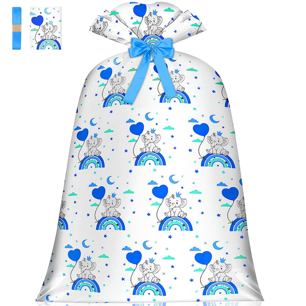 | 1.Extra Large Baby Gift Bag Capacity: The Jumbo Gift Bag For Baby Shower Measures A Generous 48X36Inches, Extra Large Baby Shower Gift Bag Baby With Gift Tag And Gift Ribbon (Tie), Making It Perfect For Wrapping Oversized Presents Like Baby Stroller, High Chair, Bikes, Large Toys, Or Multiple Smaller Gifts. Giant Gift Bag For Huge Gift Ideal For Baby Showers, The Ample Space Ensures You Can Fit Everything Inside With Ease. 2. Adorable Blue Rainbow And Elephant Design: Featuring A Charming Blue Elephant And Rainbow Pattern, This Large Plastic Gift Bag Baby Boy Adds A Delightful And Playful Touch To Any Baby Boy'S Gift. Big Gift Bag Blue Is Perfect For Baby Showers, Creating A Memorable Unwrapping Experience. Baby Shower Wrapping Paper For Baby Boy, Toddler, Little Boy, Kids, Children 3. Versatile For Various Occasions: This Baby Shower Bag Is Perfect For A Variety Of Events Beyond Baby Showers, Including Birthdays, Holidays, Party, And More. The Versatile Design And Size Of The Large Plastic Gift Wrapping Bag For Large Gifts. Make It A Must-Have For Wrapping Large Gifts For Any Celebration. Simplify Your Gift-Wrapping Process With This Oversized Gift Bag Baby. Just Place Your Gift Inside And Tie It With The Included Ribbon For A Quick And Hassle-Free Wrapping Solution. Offering Great Value, This Single Pack Of A High-Quality, Reusable Jumbo Present Bag Provides A Practical 4. Thick: Made From High-Quality Plastic, This Huge Gift Bag Baby Is Designed To Hold Bulky Items Securely. The Jumbo Baby Shower Gift Wrap Bag /Bike Gift Bag/ Xl Gift Bag/Bolsa Para Baby Shower Is Made Of Thick Material, The Thicker Material Ensures Your Gifts Remain Hide, Making It A Reliable Choice For Any Baby Boy And Little Boy Occasion. 5. Service: Designed With Convenience And Quality In Mind, Our Baby Gift Wrap Baby Shower Aims To Meet And Exceed