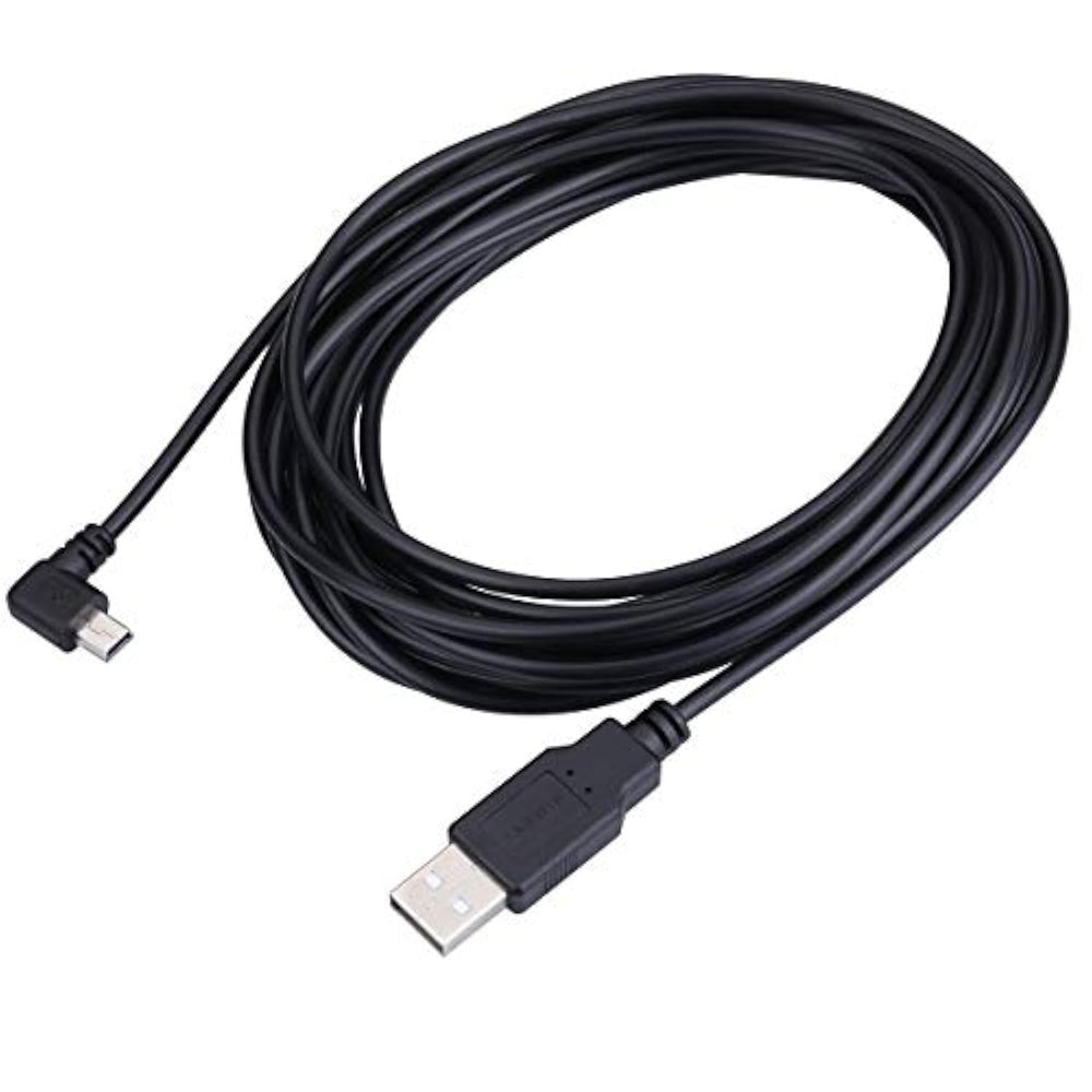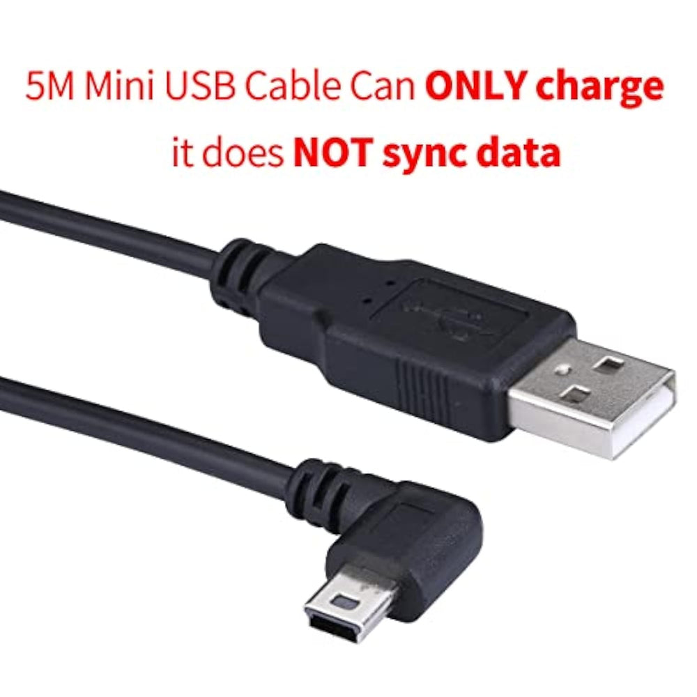 | This 5M Usb 2.0 A To Mini B Usb 5 Pin Charging Cable Is With 90 Degree Left Angle Connector. It Will Power Up Mini B Usb Devices Like Car Dashcam, Gps Navigation, Sports Action Camera Gopro Hero 4 3+ 3, Digital Camera, Camcorder, Backup Camera, Mp3, Game Controller And More Devices. | | This Mini B Usb Cable Is More Durable And Heavy Duty With Reinforced Connector, Soft Pvc Jacket And Pure Copper Conductor Which Provides Steady Power. | | The Unique 90 Degree Left Angle Connector Is Designed For Tight Corner Especially When The Device Should Be Connected With Cable In Limited Space ( Such As In Car), And 3.5Mm Diameter Makes The Cord Easy To Be Routed In Car. | | 5 Meters Long Cord Will Be Particularly Suitable For Car Dash Cam / Gps Navigation / Backup Camera When You Would Like To Route The Cable Around The Windshield In Vehicles, And You Can Hide The Thin Cable Along Or Behind The Trim Or Headliner. | | Comes With 5 Pc Wiring Clips For Wiring In Vehicles. Compatible With Most Mini Usb Devices Such As Garmin Nuvi Series Gps, Nextbase Dash Cam, Transcend Drivepro Dashcam, Papa Go Dashcam Etc. Note: This Cable Can Not Sync Data. It Only Can Be Used As Power / Charging Cable. | |