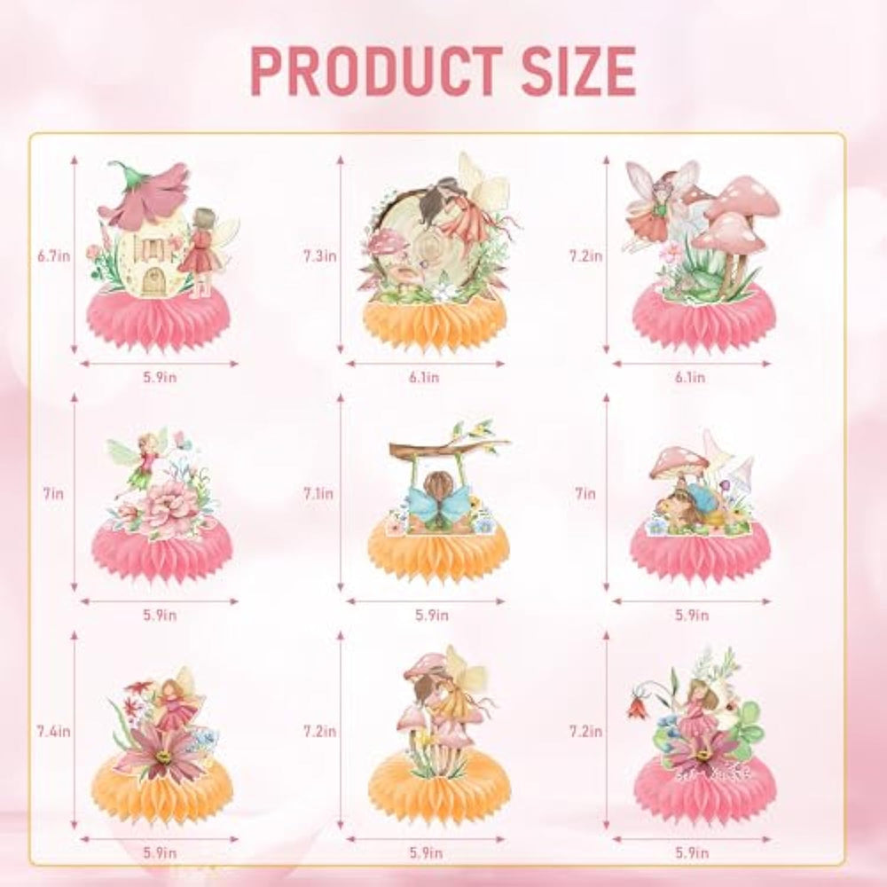 | What You Get: You Will Receive 9 Different Fairy Honeycomb Centerpiece Party Supplies. The 3D Fairy Centerpiece Decoration With The Theme Of Cute Butterfly Elf Will Make Your Party Scene More Lively And Attractive. Decorate On Your Party Table To Create A Warm And Cozy Party Experience! | | High-Quality Material: Our Fairy Birthday Decorations Are Made Of High-Quality Cardboard With Clear Patterns And Bright Colors, Which Are Sturdy And Sturdy. Pink Flowers And Mushrooms, Floral Garden Elements Create A Cozy Fairy Party Decoration. Bring Some Sparkle To Your Party! | | Easy To Operate: These Fairy Birthday Party Decorations Need You To Tear Off The Sticker On The Honeycomb Ball, And Then Connect It To The Other Side Of The Honeycomb, And You Can Easily Make A Beautiful Honeycomb Centerpiece. Let’S Decorate Your Garden Tea Party Together! | | Fairies Theme Decorations: These Fairy Birthday Party Supplies Can Be A Fairy Gift For All Fairy Lovers. The Butterfly And Flower Fairies In The Set Are In Various Cute Poses, Waiting For You To Place Them In A Prominent Position On The Party Table. Come And Decorate This Enchanted Forest Fairy Party With Us! | | Wide Application: Our Fairy Party Honeycomb Centerpiece Are Suitable For Various Occasions. You Can Use It As Fairy Theme Party, Fairy Birthday Decorations, Fairy Baby Shower Decorations, Birthday Decorations For Girls, Garden Tea Party, Fairy First Birthday Decorations, Fairy Party Supplies And More. | |