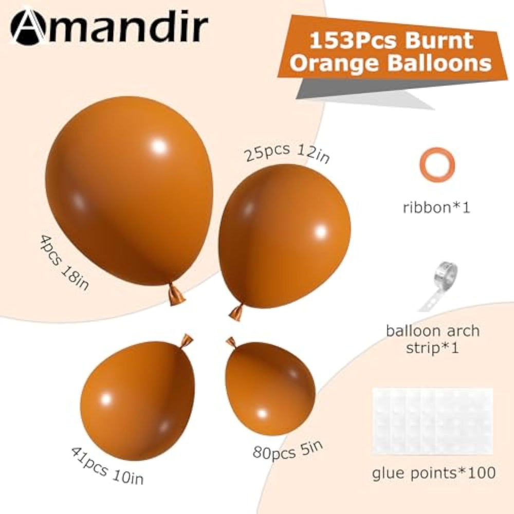 This burnt orange balloon arch kit includes balloons in multiple sizes along with a balloon strip, glue dots, and ribbon for easy setup. Made from durable latex, the balloons are flexible, long-lasting, and resistant to breakage, ensuring a vibrant display. Ideal for birthdays, baby showers, Thanksgiving, Halloween, or autumn-themed parties, the kit allows you to mix and match burnt orange with other colors to create a customized garland or backdrop that perfectly suits your celebration.