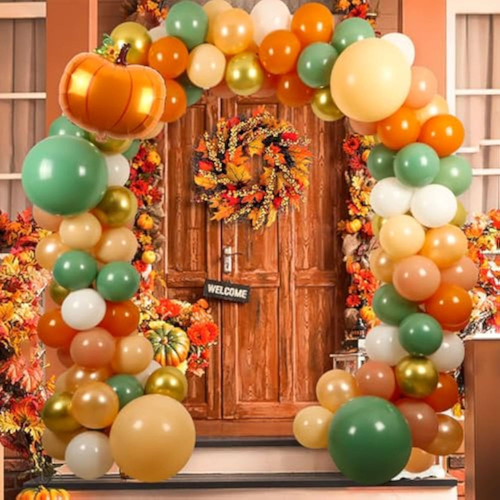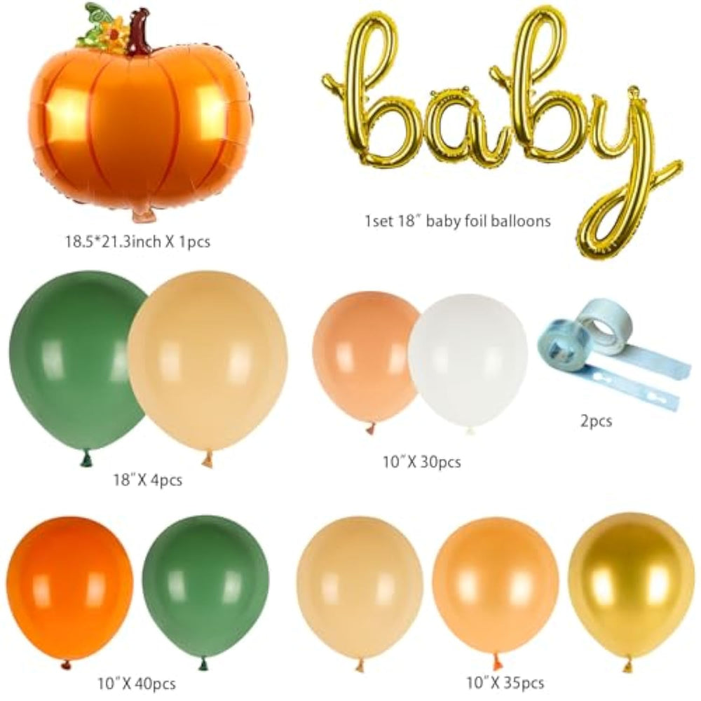 This little pumpkin balloon arch kit includes 118 pieces with gold “baby” letter foil balloons, a large pumpkin foil balloon, assorted latex balloons in fall colors, chrome gold balloons, and assembly tools like a balloon strip and glue dots. Made from thick, durable latex, the balloons create a vibrant and long-lasting garland that can be displayed on walls, tables, windows, gardens, or party backdrops. Perfect for baby showers, Thanksgiving, weddings, birthdays, or fall-themed celebrations, this kit is easy to assemble in about 30 minutes and adds a festive seasonal charm to any event.