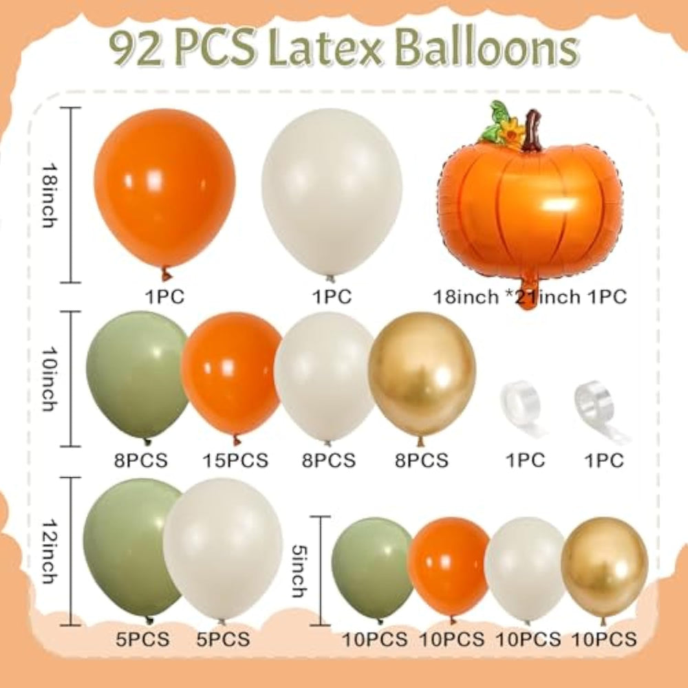 This little pumpkin balloon arch kit includes a mix of retro burnt orange, sage green, retro white, and metallic gold balloons, along with a large pumpkin foil balloon, various sizes of latex balloons, balloon chain, and sticky dots for easy setup. Made from durable, non-toxic latex, the balloons are safe, thick, and resistant to popping, ensuring they stay vibrant throughout your event. With its warm autumn color palette, this garland kit is perfect for creating stunning backdrops and festive atmospheres at fall harvest parties, Friendsgiving celebrations, autumn birthdays, or little pumpkin baby showers, and can be easily assembled into arches, bouquets, or garlands for a professional look with minimal effort.