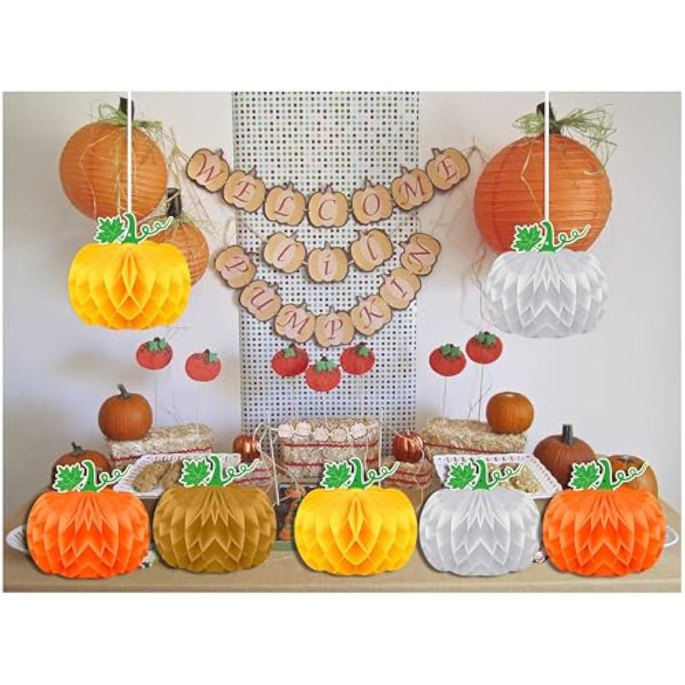 Customized For Fall Thanksgiving Halloween Table Decorations, Little Pumpkin Baby Shower Decorations | Comes With 8Pcs Big Size Pumpkin Honeycomb Centerpiece, Including 4 Colors And Each Color Has 2Pcs Centerpiece, Will Meet Your Expectation In Your Party Decorations | Easy To Assemble: Just Connect The Two Sides Together To Make A Pumpkin Shape. And You Can Hang Them With String Or Just Put Them On The Table. | Big 10 Inch Pumpkin Honeycomb Centerpiece, And Made Of Quality Paper Material, They Are Reliable And Reusable And Can Be Served In Your Party For A Long Time. | Wide Application: You Can Hang The Pumpkin Honeycomb In Your Room Or Just Put Them On Your Party Table. Will Catch Your Guests Eyes During The Party. |