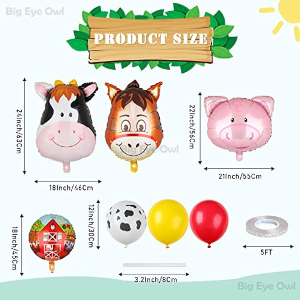 Premium Material: Made Of Premium Foil And Latex For Durability And Safety | Vibrant Farm Animal Designs: Includes Cow, Pig, Donkey, And Horse Shaped Balloons | Perfect For Farm Theme Parties: Cute Animal Balloons Create A Joyous Atmosphere For Any Occasion | Reusable Decor: Foil Balloons Can Be Filled With Air Or Helium And Used Again And Again | Fun Photo Props: Use Animal Balloons As Props For Photos And Decorations At Parties |