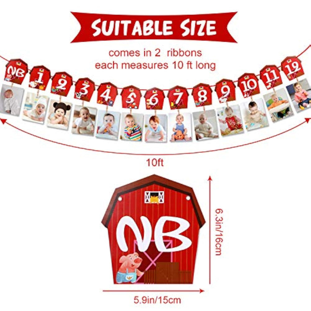 Design For First Birthday Photo Banner: Printed With Vivid Farm Animals And Barnyard, Display Your Baby'S Memorable Moments With Our Barnyard Themed Photo Banner, Making Your Baby'S First Birthday Memorable And Personalized | Durable Materials: The Farm Birthday Banner Is Made Of Good Quality Thick Cardstock, It'S Durable For Birthday Party Decorations | Suitable Size: This Cute Farm Animal First Birthday Party Banner Measures 16 X 15 Cm/ 6.3 X 5.9 Inch, Each Can Hold A 4 X 4 Inch, 4 X 6 Inch, Or 5 X 7 Inch Photo; Each Banner With 10 Ft Extra Ribbon, 2 Pieces In Total, Allowing You Adjust Each Barnyard Banner To Fit In The Place You'Re Hanging It | Great For First Birthday Party Decorations: This Barnyard Theme Baby First Birthday Banner Is Good For Baby Room Decor, First Birthday Party, Nursery, Home Decor; Suitable For Both Baby Boys And Baby Girls, You Can Hang The Photo Banner Up On A Wall Or Just Hang Around The Table | Easy To Set Up: No Diy Required, This Banner Comes In 2 Sections And It'S Pre-Strung, You Just Need To Clip The Photos Onto The Banner With The Wooden Clips And The Glue Point Dot Which We Provided |