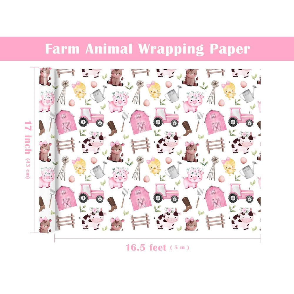 | Perfect Size: Each Roll Measures 17 Inches Wide X 16.5 Feet Long, Which Provides You With A Total Of 23.25 Square Feet Of Paper. It'S Perfect For Any Small Or Medium - Sized Gift And Is Also Very Convenient To Store. Farm Animal Design: Adorable Farm Animal (Pink Pigs, Donkeys, Cows, And Chick) With Various Farm Elements Print, Vivid Colors And Interesting Pattern Will Make Your Gift Special And Shining. Premium Quality: Created With High-Quality Paper Materials, Thick And Not Easily Tear Or Rip. Item Came With Shrink Film To Prevent Wrapping Paper From Scratches And Reduce Dust. Use All Occasion: Perfect For Boys Girls Kids Birthday, First Birthday Party, Baby Shower, Party, Holiday, And Other Special Occasions Gifts Wrap. It Is Also Great For Diy Craft Project, Party Decoration And Other Artistic Inspirations. Quality