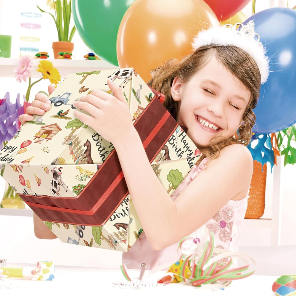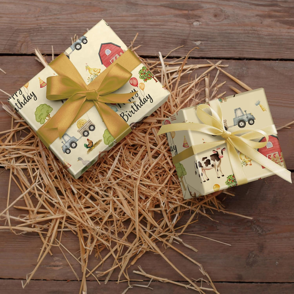 | Farm Birthday Wrapping Paper: Our Yellow Birthday Wrapping Paper Features 4 Jumbo Sheets Measuring 28 X 40 Inches Each, Making It The Perfect Size For Wrapping Gifts Of Medium And Small Gifts Charming Farm Theme: Our Gift Wrapping Paper Is Features Watercolor-Style Barns, Tractors, Farm Animals, Like Cows, Chickens, Horses, Ducks; And With Floral, Tree, Balloons, “Happy Birthday” For A Fun Rustic Birthday Vibe Versatile Occasion: Our Funny Farm Wrapping Paper Is Perfect For Kids' Birthday Baby Shower. Ideal For Children’S Parties, Especially Those Who Love Animals, Trucks, Or Barnyard Adventures, Making Each Wrapped Gift Feel Extra Special Premium Gift Wrapping Paper: Made Of Premium-Quality Paper With Glossy Finishes, Advanced Printing Technology, Clear Pattern, And Supreme Hand Feels And Texture. Sufficient Paper Thickness, Will Not Be Torn Easily During Packaging Easy To Store: For Your Convenience, Each Sheet Is Expertly Folded, Making It Easy To Store And Use Whenever You Need It. No More Hassle With Unwieldy Rolls Of Paper. If You Mind, Please Consider It Before Purchasing Professional