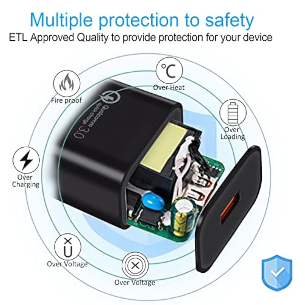 | Quick Charge 3.0 (Qc 3.0, Compatible Quick Charge 2.0.) Charge Compatible Devices Up To 75% Faster Than Conventional Chargers. | | Quick Charge 3.0 Usb Micro 18W Usb Wall Charger For Samsung Galaxy J8/J7/J6/J6+/J5/J4/J4+/J3/J2/J1 Prime Pro,Samsung Galaxy J7 Prime,J7 Sky Pro/Pro,J7 V/J7 V 2Nd/Perx/Star,J7 Neo/Luna/Crown/Eclipse/Refine,J6 Plus/J5 Pro,J4 Plus/J4 Core,Samsung Galaxy J3 V,J3 Prime,J3 Emerge/Pro/Luna/Eclipse/Orbit/Star/Mission,J2 Core/Pro,J1 Luna/Ace/Nxt,J1 Mini/Mini Prime.Galaxy S6 Edge/S6, Galaxy S7 Edge/S7,S6 Edge/S6. | | Compatibledevices:Lg Q6/K7,Lg G2, G3, G4, G Flex, V10, Stylo,Volt, K7, Optimus Exceed 2,Tribute, Nexus 5, Leon, Stylo 2, Phoenix 2, Vista;Nokia 6,Sony Xperia Z3,Huawei Honor 7X/6X,Nexus 6/5Motorola Motorola Moto G5S/G5 Plus/G5/G4/E4 And Android Smart Phone | | Etl/Ce / Fcc / Pse / Rohs Certified; Intelligent Circuit Design Always Protect Devices And Charger From Over-Charged, Over-Current Or Short Circuit. | | What You Get:1 X 18W Quick Charge 3.0 Usb Wall Power Charger; 1 X 5Ft Micro Usb Charging Cable. | |