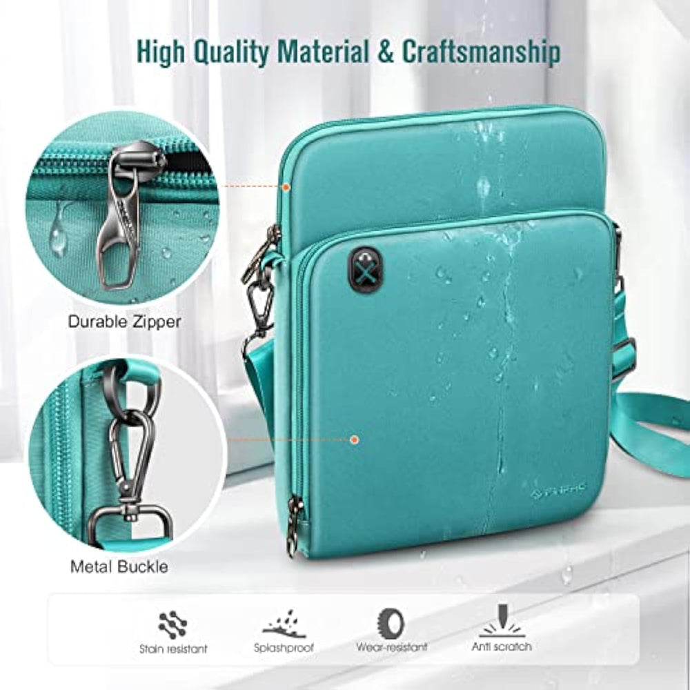 | Capacity: The external dimension: 11.02*8.27*1.18". Maximum fit model size: 10.12" x 7.60". Compatible with 11" iPad Air (M2 M3) 2024 2025, 11" iPad (A16) 2025, 11" iPad Pro (2024 M4 Chip/4th Gen 2022 M2 Chip/3rd Gen 2021/2nd Gen 2020/1st Gen 2018), 10.9" iPad 10th Gen, 10.9" iPad Air 5th/4th Gen, 10.2" iPad 2021/2020/2019, 10.5" iPad Air 3 2019, 10.5" iPad Pro 2017, 10.5" Microsoft Surface Go 4/3/2/1, 9.7" iPad, 8.0" to 11" Samsung Galaxy Tab and other up to 11" tablets. | | Durability: 900D water repellent wear-resistant nylon exterior with shockproof soft foam air cushion interior protects your device from dust, shocks, bumps, scratches, scuffs and spills. | | Multifunctional: Front multi-functional mesh bag offers convenience to store small personal belongings such as mobile phone, mouse, cables, chargers, power bank, pens and other accessories. A hole for headphone outside gives easy access to Earphone usage. | | Superior Protection: Shock-absorbing padding at the bottom corners protects your device against bumps and scratches. Patented smooth zipper allows easy access and increase safety. | | Convertible Carrying Way: Removable shoulder strap and reinforced handle provides a more flexible carrying experience. NOTE: This case features water-resistant zippers, which are more secure than standard zippers. They will not break easily and become easier to use once you are accustomed to it. NOTE: 's better to put the naked machine into the case. | |