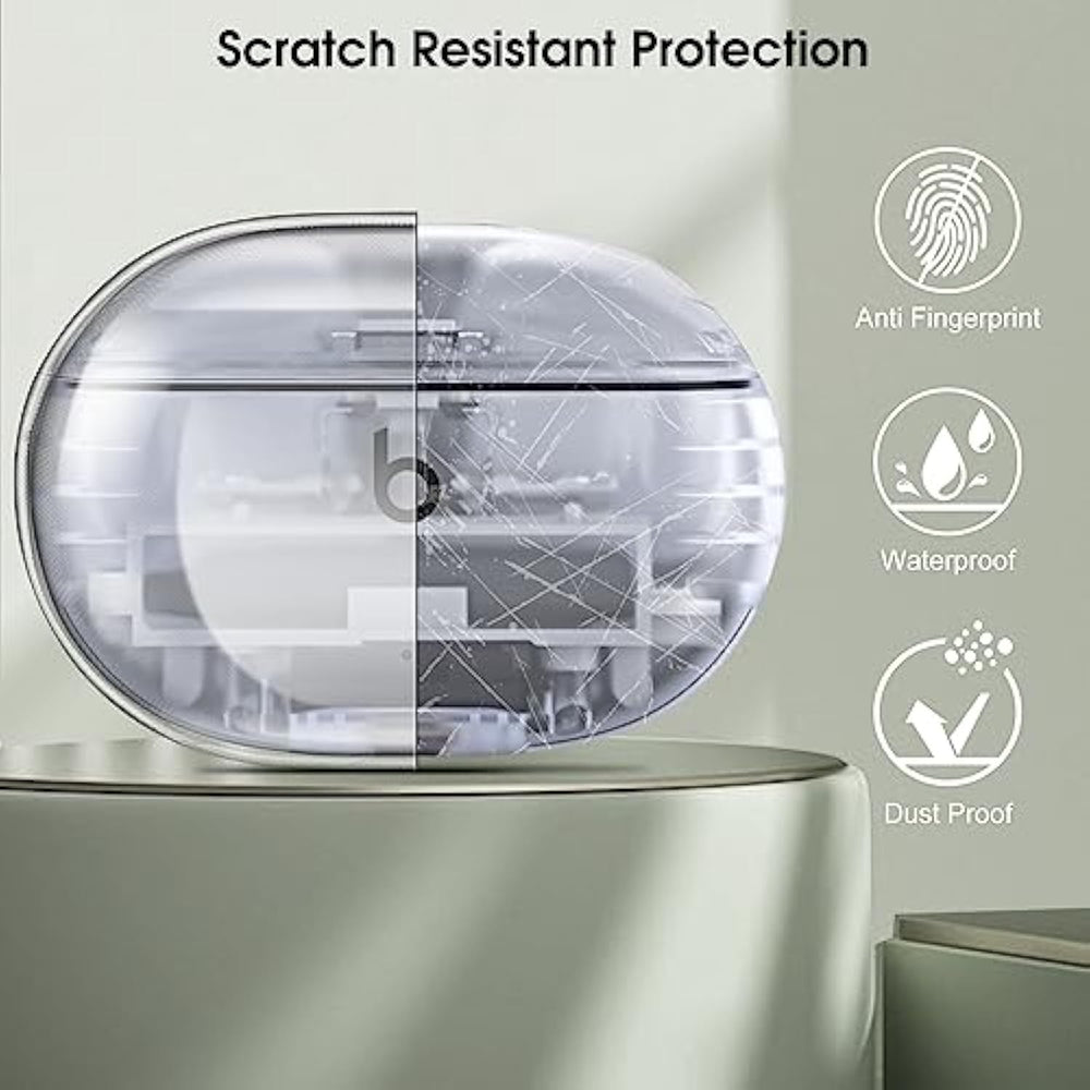 | COMPATIBILITY: Perfectly fits the New Beats Studio Buds + 2023 and Beats Studio Buds 2021 without any additional loose. LED Light and LOGO Visible. (Note: Beats Studio Buds is not included). | | PREMIUM MATERIAL: Made of durable TPU. No deformation, Anti fingerprint, Anti-static, Anti-dirt and dust. Clear TPU bud case shows off original colors of Beats Studio Buds Plus and Beats Studio Buds . | | EXCELLENT PROTECTION: Inside buckle of Beats Studio Buds top cover prevent the cover from falling off. Protect Beats Studio Buds against drops and scratch. Tips: When install flip top, please press it in until you hear a ”click” sound, make sure the inside buckle of beats studio buds have been locked in. | | WIRELESS CHARGING SUPPORTED: Supports regular and wireless charging without taking the Beat Studio Buds case off. Front LED visible allows to check the power conveniently. | | PORTABLE KEYCHAIN: The case comes with a metal keychain carabiner. Convenient to attach the New Beats Studio Buds Cover to backpack, bags or keychain. Easy to carry around in the daily use or travel. | |