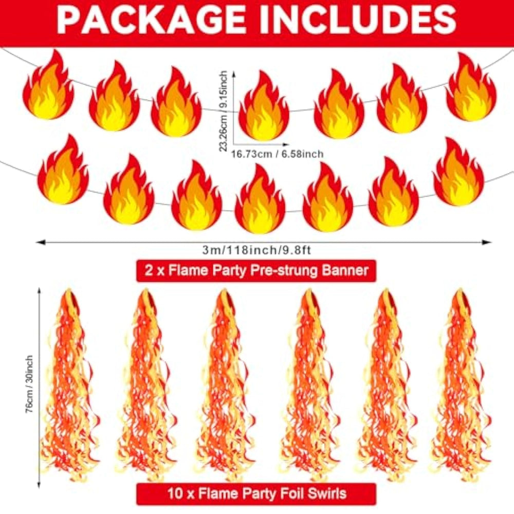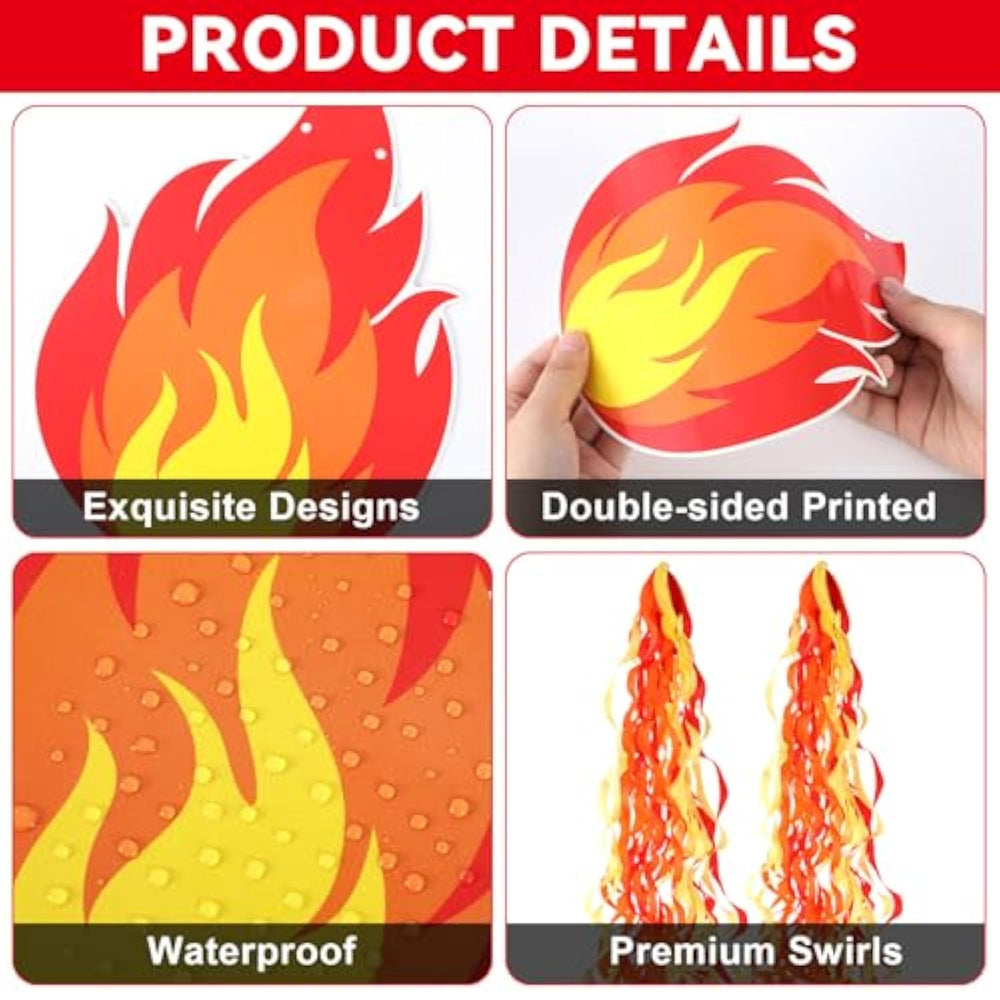 | Package Included: This Flame Themed Birthday Party Decorations Set Includes 2 Strings Of Flame Banners (14 Banner Cutouts), 10 Flame Swirl Hangings. This Set Includes Everything You Need To Host A Stylish And Memorable Celebration, And Is Ideal For Creating Party Decorations That Are Full Of Fun And Festive Atmosphere. | | Flame Design: The Vibrant Flame Themed Decorations Create An Exciting And Energetic Atmosphere, Which Is Ideal For Any Party. This Set Contains Two Unique Flame Design Styles: The First Features Bold Red And Yellow Flames For A Classic Look; The Second Features A Flowing Red And Yellow Modern Pattern That Adds An Artistic Touch. The Swirling Arrangement Of The Cutouts Enhances The Visual Depth And Movement, Making It Ideal For Birthday Parties, Holiday Celebrations, Or Any Festive Occasion. | | Premium Quality: The Flame Banner And Swirl Hangings Set Is Made Of Thick, Durable, High-Quality Paper. The Bright And Clear Patterns And Vibrant Colors Are Eye-Catching. Our Firefighter Birthday Party Supplies Are A Long-Lasting Decoration For Your Party. | | Easy To Use: The Pre-Strap Flame Themed Birthday Party Banners Are Fully Assembled, Saving Organizers Time And Energy. Our Flame Themed Party Ceiling Streamer Decorations Come With Pre-Installed Hooks For Easy Installation. They Are Sure To Attract Guests' Attention And Create A Cheerful Atmosphere. | | Wide Application: Our Flame Party Decorations Are Suitable For Firefighter Theme Birthday Parties, Emergency Responder Events, Or Community Celebrations. The Flame Hanging Banner Is A Great Addition To Firefighter Theme Parties, Pentecost Celebrations, Emergency Responder Appreciation Events, And Children'S Birthday Parties, Adding A Festive Atmosphere To Any Party. | |