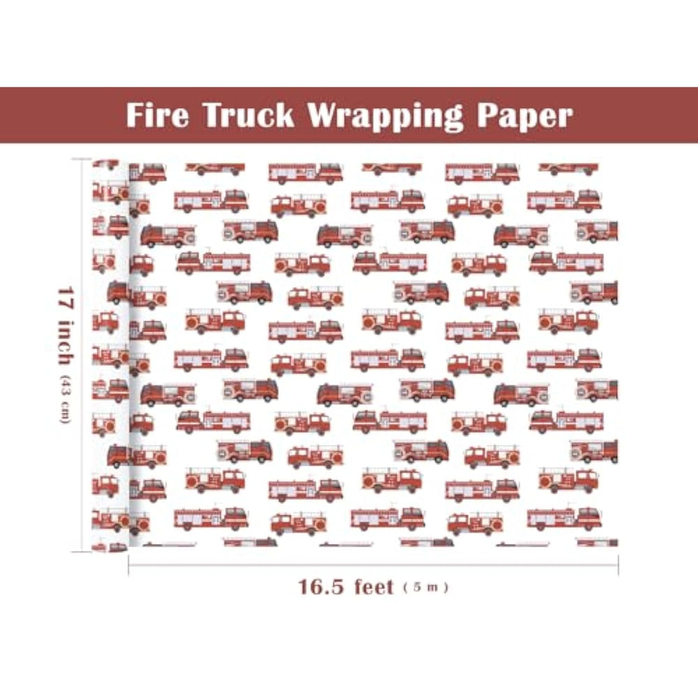 Perfect Size: Each Roll Measures 17 Inch Wide X 16.5 Feet Long. Providing You With A Total Of 23.25 Square Feet Of Paper, Perfect For Any Small Or Medium Sized Gift. | Fire Truck Design: Red Fire Engine Car Printed On A White Wrapping Paper, Creates An Energetic And Exciting Look, Will Make Your Gift Beautiful And Shining. | Premium Quality: Created With High-Quality Paper Materials, Thick And Not Easily Tear Or Rip. Item Came With Shrink Film To Prevent Wrapping Paper From Scratches And Reduce Dust. | Use All Occasion: Perfect For Kids Boys Birthday, Baby Shower, Party, Holiday Gifts Wrap. It Is Also Great For Craft Project And Greeting Card Decorations. | Quality