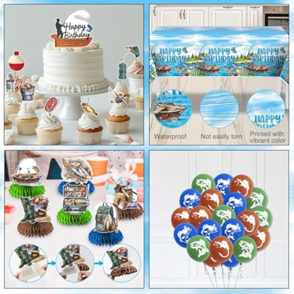 | Package Includes: Our Fish Birthday Party Decorations Includes 1Pc Gone Fishing Banner, 1 Pc Fish Garland, 6 Paper Cutouts In 6 Different Designs, And 6 Pieces Of Foil Hanging Swirls In 3 Different Colors(Navy Blue, Green, Red), 6Pc No Diy Fishing Birthday Decorations Centerpieces, 1Pc Backdrop(180*110Cm), 1Pc Tablecloth(137*274Cm), 1Pc Cake Topper, 8Pc Cupcake Topper And 24Pc Latex Balloons In 3 Colors(Navy Blue, Coffee, Green) | | High Quality: Our Fishing Themed Party Decorations Are Of Good Quality. The Balloons Are Made Of Natural Latex And Are Non-Toxic. The Latest Style Has Just Been Produced, So There May Be A Unique Smell Of Latex. Put It In A Ventilated Place For 1-2 Days, And It Would Be Better. The Gone Fishing Banner And Happy Birthday Cake Topper Are Made Of Cardstock, Which Is Thick Enough And Not Easy To Bend. Our Happy Party Decor Must Capture Every Fishing Fans' Heart At Your Happy Party | | Unforgettable Memories: Our Fishing Decorations For Party Feature The Fish Image. Their Unique Design And Bright Colors Will Brighten Up Your Party. Use Our Fish Party Decorations To Make Your Family And Friends As If Put Themselves In The Scene And Explore With The Happy Characters. Our Fish Themed Party Decorations Offer A Of Memories For Your Love | | Wide Range Of Applications: Our Fishing Birthday Decor Are Not Only Suitable For A Fishing Party Decor, Fishing Party Supplies, Or Fish Birthday Decorations Design Parties But Also Can Be Used In Fishing Themed Birthday Decorations, Birthday Home Fireplace Mantel Decor, Happy Decorations For Home, And So On. Use Your Imagination And Assemble With Other Birthday Decorations Happy, You Will Get An Unforgettable Happy Party | | 100% Satisfaction :Our Good Quality Will Make You Satisfied If You'Re Not Satisfied With Your Purchase, Please Feel Free To