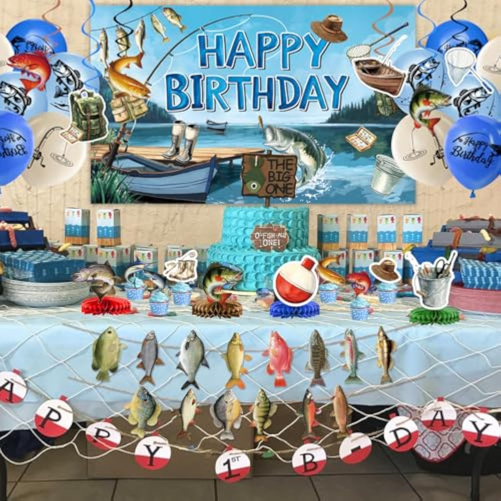 | Fishing Birthday Party Decorations: This All-In-One Set Includes 1 Fishing Backdrop, 4 Honeycomb Table Centerpieces, 1 Cake Topper, 12 Cupcake Toppers, 1 Fishing Banner, 6 Hanging Swirls, And 20 10-Inch Balloons In Up To 4 Unique Designs. It’S Perfect For Creating A Cheerful, Vibrant Atmosphere At Your Fishing Birthday Themed Party | | Fishing Birthday Designs: This Series Of Birthday Party Supplies Is Crafted Around A Fishing-Themed Birthday Concept. The Fishing Birthday Decorations Feature Boats, Fish, Fishing Lines, Bait, Trees, And River Water In Harmonized Hues, Instantly Setting A Vivid Angling Ambiance. Aimed At Weaving An Immersive Experience, These Supplies Transform The Party Into A Visually Striking, Memorably Festive Celebration Rooted In The Charm Of Fishing | | Versatile Birthday Celebrations: Instantly Transform Any Space Into An Energetic Party Celebration With Our Fishing Party Decorations Including Balloons, A Banner, Honeycomb Table Centerpieces, And A Fishing Birthday Backdrop. Effortlessly Incorporate This Must-Have Set Into Your Party Décor And Bring Every Corner Of Your Celebration To Life. Infuse Any Social Gathering With A Touch Of Nostalgia, Instantly Transporting Your Guests To The Past And Evoking Cherished Memories Of The Gone Fishing | | Safe Durable Materials: The Fishing Backdrop Is Made From High-Quality Fabric That Is Durable, Foldable, Easy To Clean, And Resistant To Dirt—Perfect For Use On Various Occasions. Our Fishing Honeycomb Table Centerpieces And Banner Are Crafted From Premium, Lightweight Paper That Is Sturdy And Tear-Resistant. The Balloons Are Made From Natural Latex And Can Be Safely Filled With Air Or Helium, Making Them Less Likely To Burst | | Wide Application: These Gone Fishing Party Decorations Cater To Every Fishing-Themed Celebration. Whether It’S Ofishally One Birthday Decorations, Fish Birthday Party Decorations, Or Any Birthday Event, These Birthday Theme Party Decorations Enhance The Festivity. Use Them As Outdoor Decorations Or To Create A Memorable Photo Wall. These Pieces Enhance Both Indoor And Outdoor Spaces, Bringing Every Corner Of Your Celebration To Life, They Are Sure To Impress Your Guests And Leave Lasting Memories | |