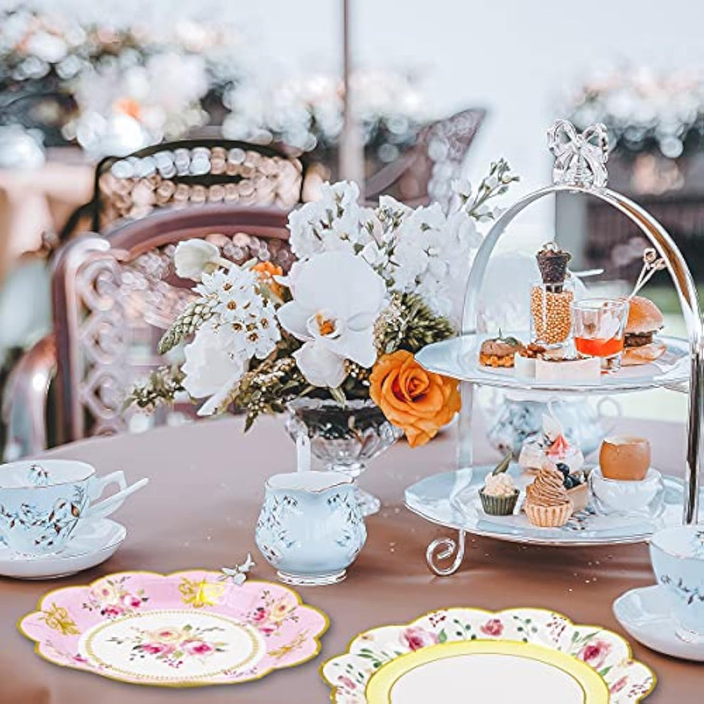 | Package Includes: 24 Floral Party Plates; Shrink Wrapped | | Size: Approx 7.28β In Diameter, Appropriate Size For Party | | Unique Design: 6 Beautiful Floral Design With Gold Foil Decoration; Each Design Has 4 Plates | | Great For Party: Fit For Spring Themed Parties, Baby Shower, Birthday, Wedding And More; Use Them As Party Favors And All Your Guest Will Love | | Our Advantages: Sturdy Paper Plates; Bright Color Printed; Well Packaged | |