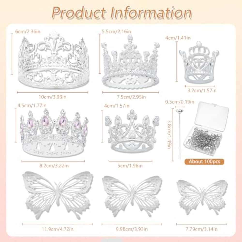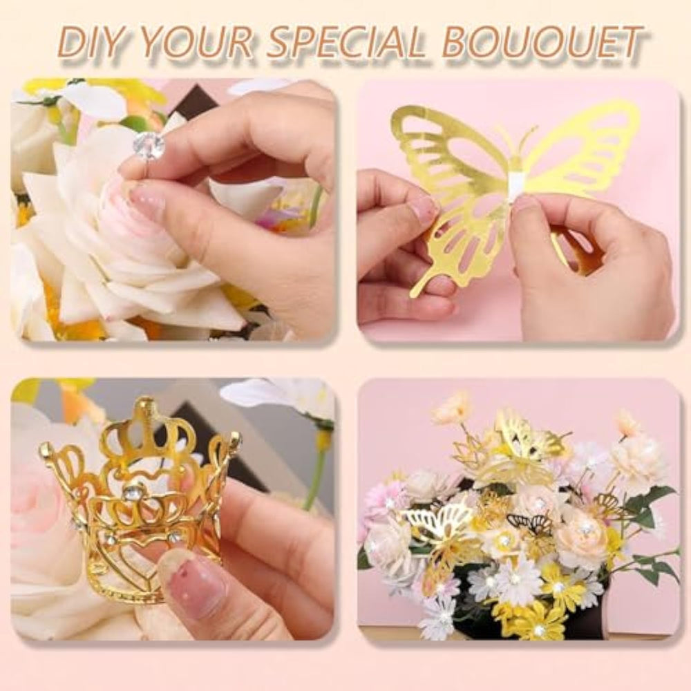| ?What You Will Get?- 5 Pack Of Crowns For Flower Bouquets In 4 Styles, 36 3D Butterfly Decorations In 3 Sizes And 100 Pieces Corsage Pins. | | ?Gold Crowns? - These Flower Bouquet Crowns Are Made Of Alloy, Sturdy Enough And Reusable. The Glittering Metal Base With Pearls And Rhinestones Looks Elegant. | | ?The Crowns In 5 Different Styles? - And Sizes Are Not Only Used For Flower Bouquet But Also As Headbands For Children'S Beauty Pageants And Crown Cake Toppers. These Flower Bouquet Accessories Offer Abundant Choices To Personalize Your Flower Arrangements Decoration. | | ?Versatile Occasions? - These Flower Bouquet Accessories Are Suitable For Various Occasions, Such As Wedding Receptions, Bridal Showers, Baby Showers, Marriage Proposals, Graduation Ceremonies, Celebrations And Other Festive Events. | | ?Wide Application?Our Floral Paper For Bouquets Kit Can Be Used For Decorating Flowers, Parties, Cakes, Crafts And Homes, Etc. You Can Also Make Your Own Diy Bouquet For Valentine'S Day, Mother'S Day, Birthday, Or Graduation As A Gift. Our Flower Paper Kit Is The Ideal Decoration For Self-Use, Florists And Cake Stores! | | ?Gold 3D Butterfly Decorations? - The Butterfly Decor Is Made Of Shiny Paper Material. With Hollow Carved Design, You Can Fold The Butterfly Wings To Achieve 3D Effects And Vivid Styling, Making The Decoration Rich In Layers. | | ?Flower Diamond Pins? - Our Floral Diamond Pins Come In A Plastic Storage Case, Decorated With Crystal Gems To Make Your Bouquets Sparkle In The Light. | | ?Service ?Please Feel Free To