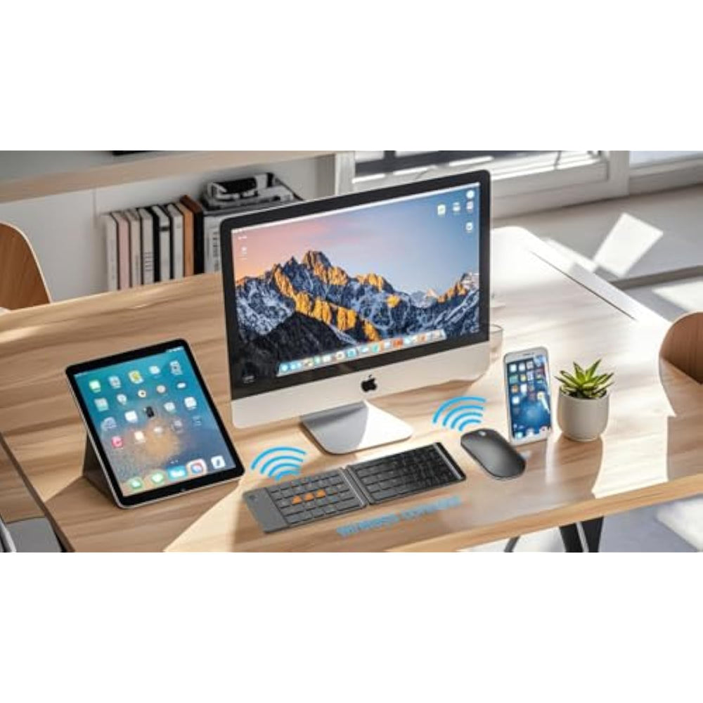| Foldable Keyboard And Mouse Combo: The Wireless Keyboard Comes With 3 Bluetooth Channels, Allow You To Connect 3 Devices At The Same Time. The Wireless Mouse Can Be Connected Using Bluetooth Or 2.4Ghz Usb Dongle. Both Keyboard And Mouse Are Compatible With Electronic Devices Supporting Bluetooth 5.0 And 3.0 Connections. | | Wide Compatibility: This Bluetooth Keyboard Works Flawless With Ios, Android And Windows System. It Can Be Widely Used In Bluetooth Phones, Desktop Computer, Laptops And Tablets. Automati