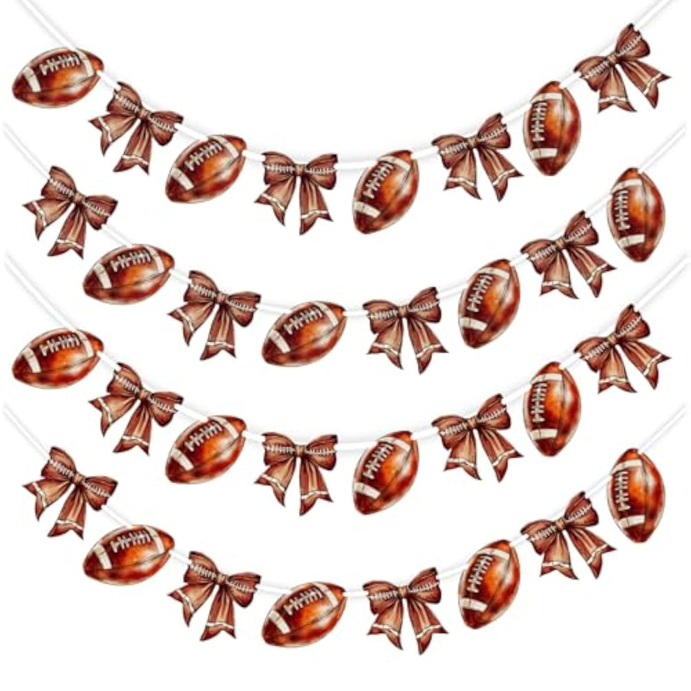 | 4-Piece Football Banner Set: Contains 4 Pre-Strung Football Themed Hanging Banners, The Banner Pattern Is A Cute Brown Bow And Football Design, Ready To Hang For Display | | Game Day Atmosphere Booster: Designed To Enhance Any Football-Themed Event, Whether It'S A Watch Party, Sports Birthday, Or A Tailgate Gathering, These Decorations Help Set The Perfect Tone | | Pre-Assembled Easy To Hang: No Diy Required! Each Garland Comes Pre-Strung For Your Convenience. Simply Hang It On Walls, Over Dessert Tables, Across Doorways, Or Along Fences | | Durable Reusable Materials: Crafted From Thick Cardstock And Durable String, These Banners Are Lightweight Yet Sturdy, Easy To Fold And Store For Future Games Or Parties | | Versatile Football Theme Decor: Great For Football-Themed Birthday Parties, Sports Clubs, Classrooms, Or Any Fan Celebration. Works Well Indoors And Outdoors For Any Football Event | |