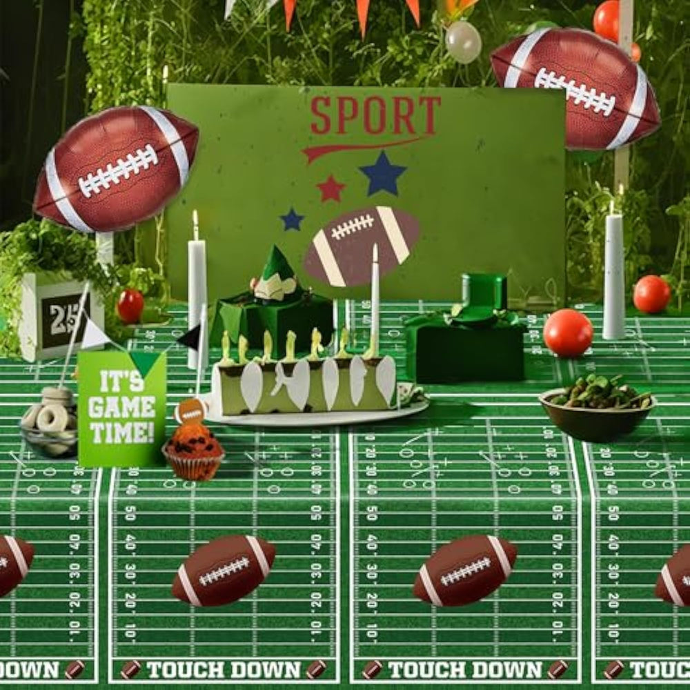 | Football Decorations: Football Tablecloth Perfect For Football-Themed Party, Game Day Party, Sports-Themed Party, And Birthday Party Favors And Party Supplies. | | Football Party Supplies: The Football Field Tablecloth Will Turn Your Ordinary Table Into Perfect Stunning Game Day Decorations, You Can Enjoy A Nice Football Party With Your Rugby Lover'S Friends. | | Football Pattern Designs: Vivid Football Field Designs To Liven Up Your Party, Attractive Football Touchdown Pattern Tablecloths Are A Favorite Among Kids, Adults, And Soccer Fans. | | Material: Selected Environmental Pe And Printed With Food-Grade Ink To Ensure The Safety For Use. And Thick Pe Makes The Tablecloth More Durable And Will Not Leak. It'S A Great Tablecloth For Party Decoration, Easy To Clean, Durable, Reusable, And Worth Buying.Note: Because The Tablecloth Is Printed, It May Smell When You Just Open The Package, You Just Need To Open The Package And Leave It For A Few Hours, The Smell Will Be Relieved. | | Size: 4 Pack 51 86Inch/130Cm X 220Cm, Rectangular Game Day Table Cover Big Enough For Covering The Whole Table. | |