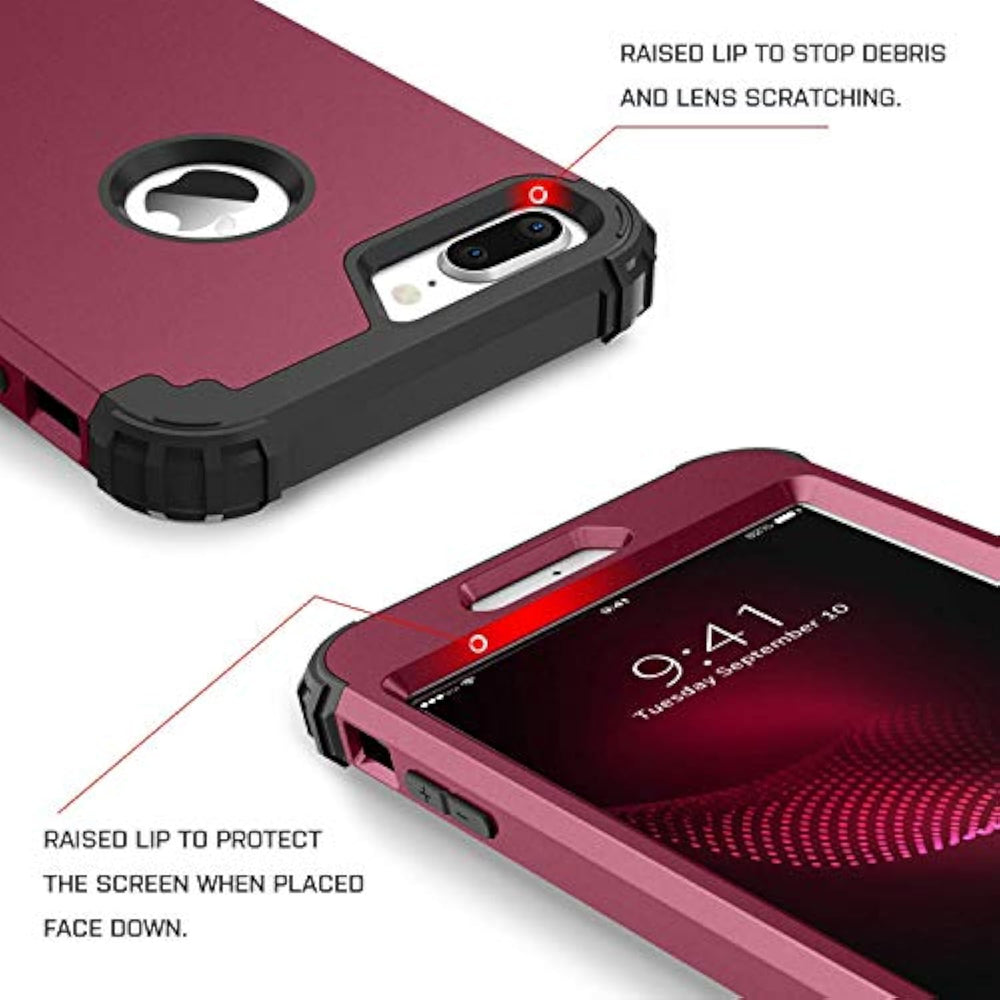 | Three Layers Design Back Case Cover Fit For 5.5 Inch Iphone 8 Plus / Iphone 7 Plus, Not Compatible With 4.7 Inch Iphone 8 / Iphone 7 Or Any Other Versions. (Attention: No Screen Protector Included) | | The Structure Consists Of Three Layers, Dual Layer Structure Back Cover Made Of High Impact Resistant Hard Pc And Soft Rubber Provide Full-Body Rugged Protection For Your Device, Front Hard Pc Cover Enhance The Protection For The Screen. | | Four Rubber Corners Provide Good Support Cushion For Shock And Drop, Smooth Pc Outer Shell Surface Protects Your Iphone 8 Plus/Iphone 7 Plus From Fingerprints, Scratches Or Dusts | | Edges Are Raised On Both Front And Back Keeping Your Screen And Camera Protected Without Making The Iphone 8 Plus/Iphone 7 Plus Feel Bulky | | Tactile Buttons With Precise Cutouts Openings To Allow Full Access To All The Functions And Buttons Without Removing Your Iphone 8 Plus/Iphone 7 Plus | |