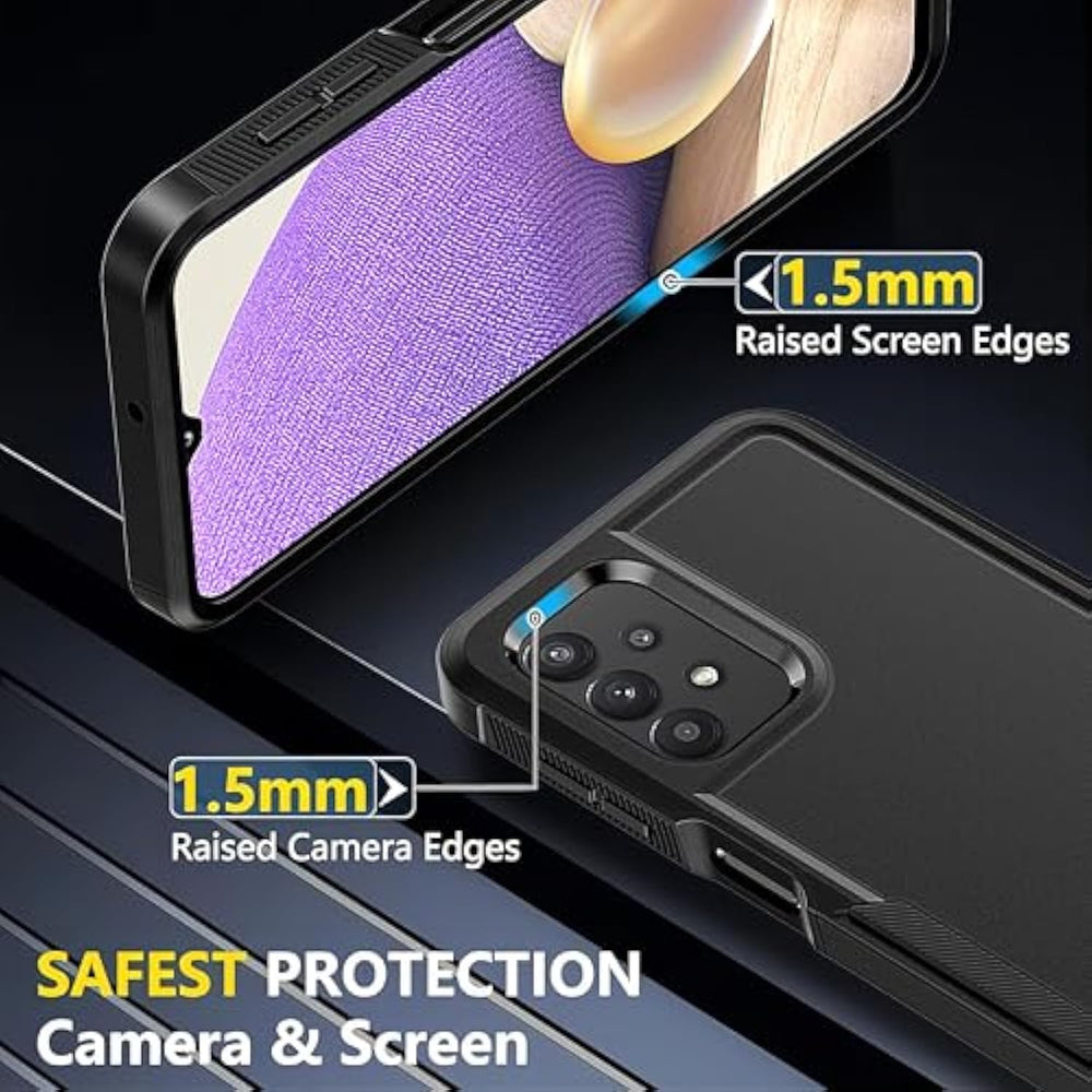 | [Compatibility] Designed For Galaxy A32 5G 6.5 Inch Only ( Not Galaxy A32 4G). | | [Skin-Friendly Material Comfortable Grip] The Unique Ergonomic Design Provides A Cozy Grip Of The Phone. Anti-Scratched And Anti Slip Premium Frosted Material Solved The Problems Of Leaving Fingerprints And Marks. This Case Can Totally Achieve A Great Grip Feeling Also Stay Clean, No Slip And Anti-Scratched. | | [Full Protection] Passed Military Drop Tested Up To 10 Ft. 2-Layer Structure Provides 360°Full Body Rugged Protection. The Galaxy A32 5G Case Is Made With Flexible Rubber Inner Cover And Hard Polycarbonate Back Cover, Provides Good Shockproof And Anti-Drop Damage Protection. Plus 2 Screen Protectors With High Touch Sensitivity Prevent Scratches And Crack. | | [Thorough Camera Screen Protection] Raised Lips Protecting Galaxy A32 5G Screen And Camera Thoroughly.1.5Mm Raised Lips Over Screen And 1.5Mm Raised Lips Over Camera Relieves Impact And Protects The Phone Screen And Camera Against Drop Damage, Cracks And Scratches.Reinforced Corner Effectively Absorb Bumps From Any Angle Drop. | | [Perfect Fit] Precise Hole Cutting And Sensitive Buttons Ensures Easier Access To Every Button And Function. Wireless Charging Is Also Supported With The Case. If You Have Any Product Problems, Like Incorrect Size, Damaged Product, Or Any Other Issues With Your Order, Please Feel Free To