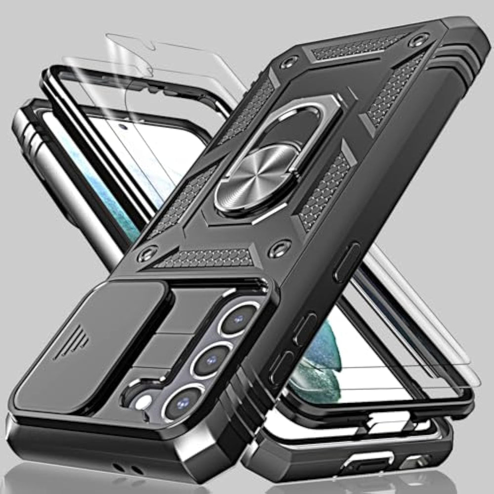 | Compatibility: Samsung Galaxy S21 6.2 Inch Case Cares For Every Detail With Precise Cutouts Allow Easy Access To All Ports, Speakers, Cameras, Buttons, And Other Functions. Won'T Compatible With Any Other Phone Models. (Not For S21 Plus/S21 Ultra/S21 Fe )Notice: Due To The Metal Ring On The Back, The Case Will Not Work With Wireless Charging Function. | | Hd Screen Protector Front Frame: The Samsung Galaxy S21 Phone Case Presents [2 Packs] Hd Clear Film.The Samsung S21 Phone Case Front Cover With Built-In Screen Protector Para Samsung S21 Provides 360-Degree All-Round Protection For Your Phone, Effectively Prevents Screen Scratches, And Supports Fingerprint Recognition, Giving You A Ultimate Bare-Screen Touch And The Best Visual Feast. | | Multi-Functional Rotatable Ring Stand: This Kickstand For Case Galaxy S21 Holds Your Phone At Optimal Viewing Angles For Movies Videos.One-Handed Operation Only, It Adjustable Drop Proof Finger Holder Holds Your Phone More Labor-Saving In Your Comfortable Angle Totally Perfect For Any Occasions! | | Installation Tips: This Case Is Made Up Of A 3-In-1 Pc Front Cover, Tpu Frame And Pc Back Cover.When Installing The Case Please Apply The Film First, Detach The Front Cover And Install It On The Phone, Then Install The Phone With The Front Cover Into The Back Cover.If You Can'T Install It In Please