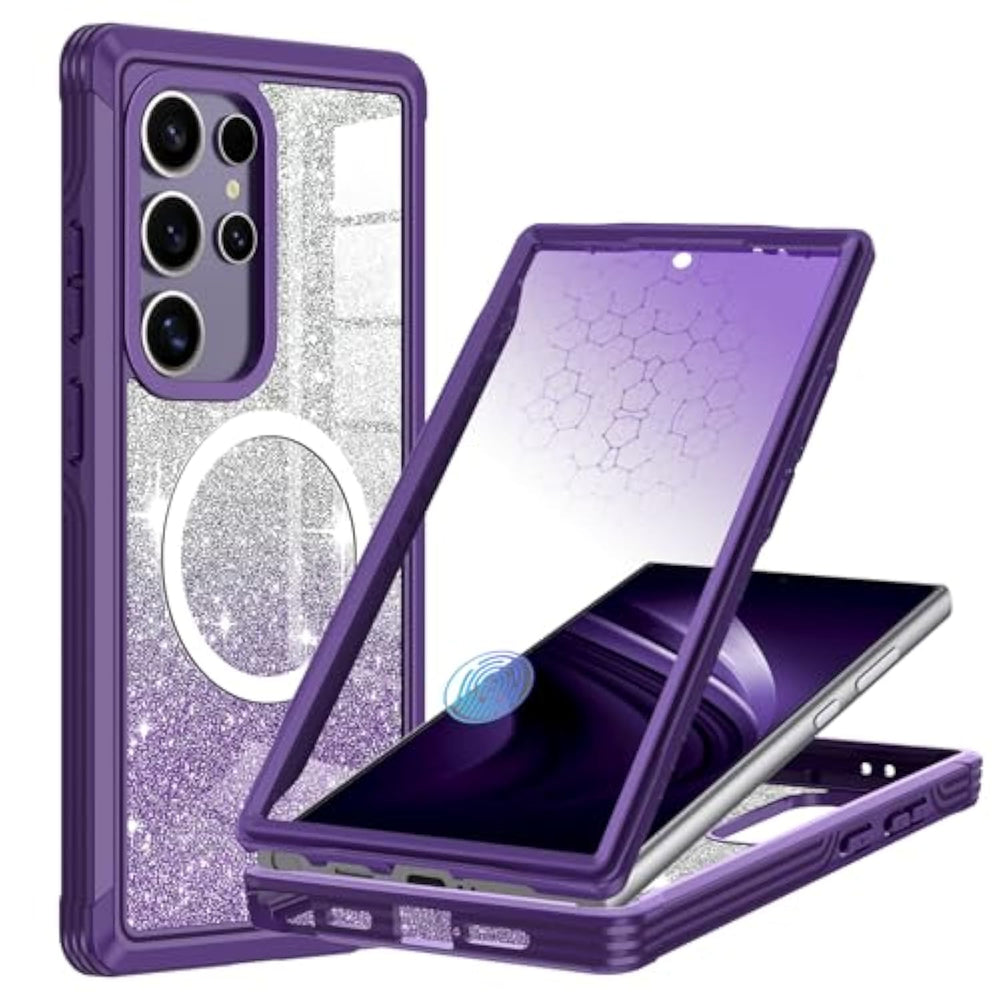 | ?Super Strong Magnetic Attraction?The Magnetic Privacy Case For Samsung Galaxy S24 Ultra Has Built-In Super Powerful N52 Magnets Which Can Effectively Prevent Accidental Drop When Shaking.For Example: Support Wireless Charging Power Bank,Wireless Charging Stand,Car Charging And Magnetic Wallet.The Powerful Magnet Ensures A Fast,Stable Connection And Supports Seamless Wireless Charging Without Interruption. | | ?Built-In Screen Protector?:This Galaxy S24 Ultra 5G Case With Built-In 9H Tempered Glass Screen Protector Protect Your Phone Screen From Scratching And Cracking, Making You Enjoy The Sensitive Touch Without Bubbles.The Built-In Front Cover Provides Excellent Protection For The Phone,Maintaining The Original Screen Sensitivity While Preventing Damage Caused By Scratches And Impacts.It Also Supports Fingerprint Unlocking For Added Security. | | ?Full Body Protection?This Galaxy S24 Ultra Case Provides Complete Front And Back Coverage,Including Four Anti-Shock Corners,Raised Screen Camera Bezels And Anti-Slip Sides.Cushioned Corners Create Enhanced Security During Drops And Falls.Dual Layer Provides 360 Grad Full Body Protection.Perfect Protection Design Protects Your Phone Camera From Scratches,Collision,Scuffs And Impact. | | ?Sparkle And Unique Design?This Galaxy S24 Ultra Case Adopts Electroplating And Gradient Glitter Clear Design.The Case Is Soft, Glossy,Smooth,Durable And Very Easy To Clean.This Case Adopts A Clear Case Bling Glitter Paper So That The Glitters Will Never Fade Or Flake Off And Always Stay Bling,Makes Your Phone More Shinning And Sparkly. | | ?Compatibility?:Only Compatible With Samsung Galaxy S24 Ultra 5G 6.8 Inch.Not Compatible With Other Models.Please Check Your Model Type Before Buying This Samsung Galaxy S24 Ultra 5G Phone Case. Precision Cutouts For Easy Access To All Ports,Buttons,Sensors And Cameras.The Unique Ergonomic Design Makes Independent Buttons Feel Sensitive And Easy To Press With Good Touch. | |